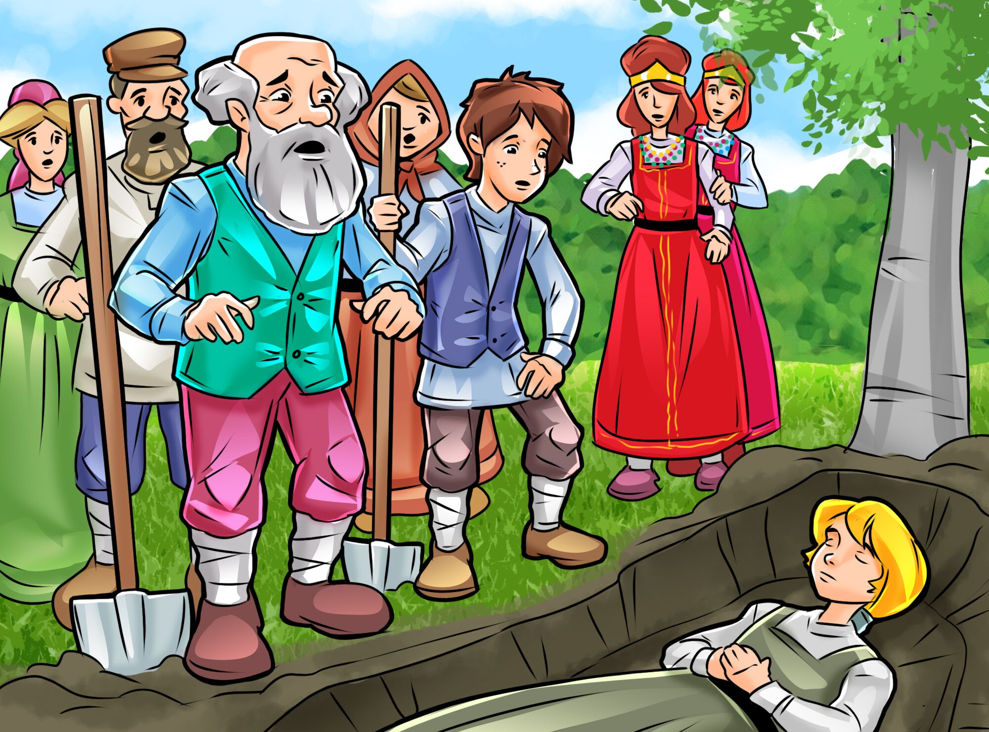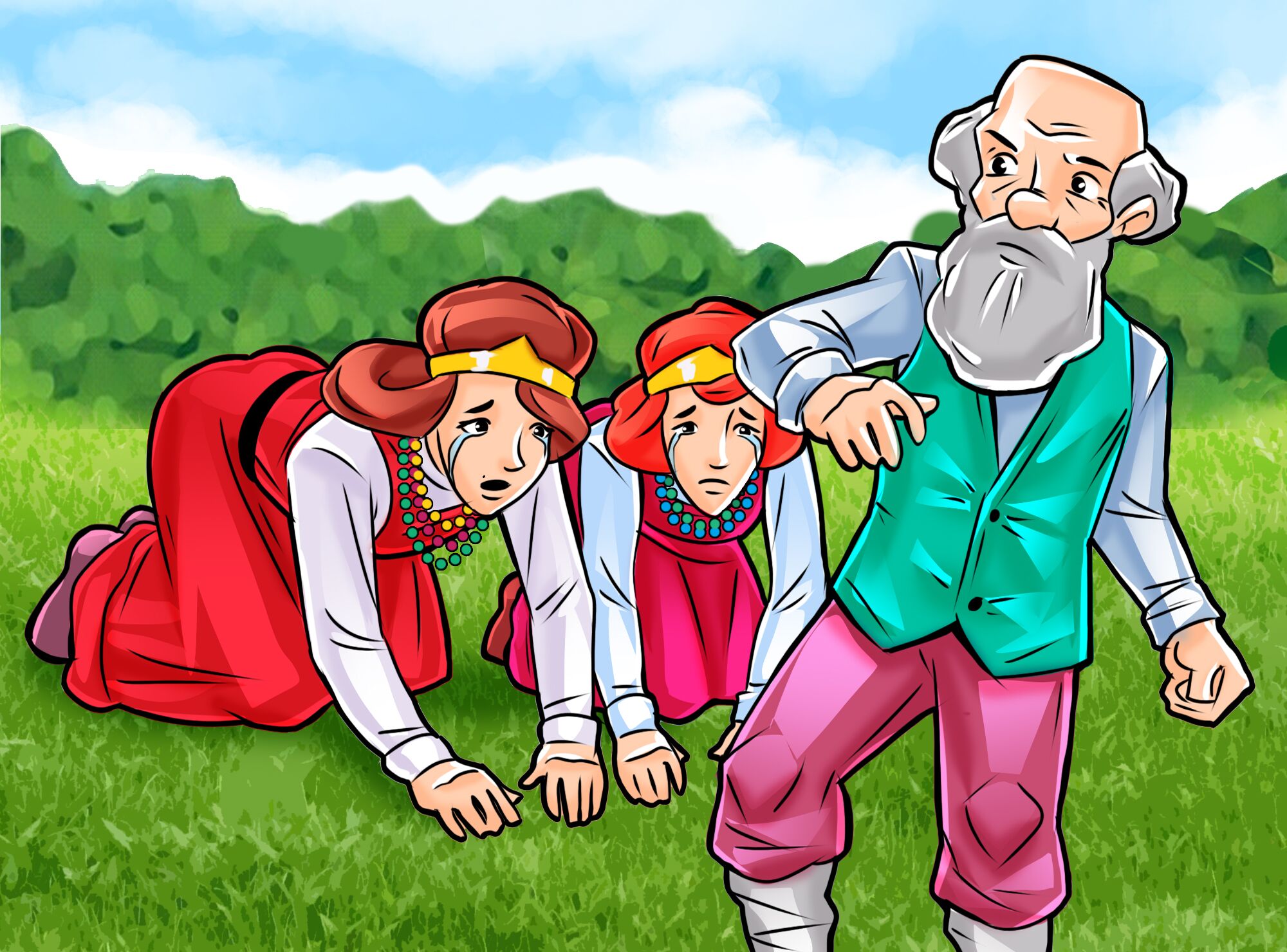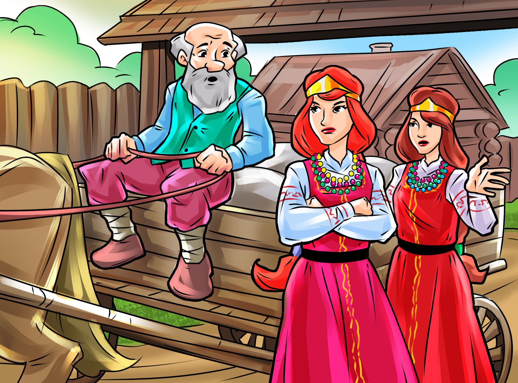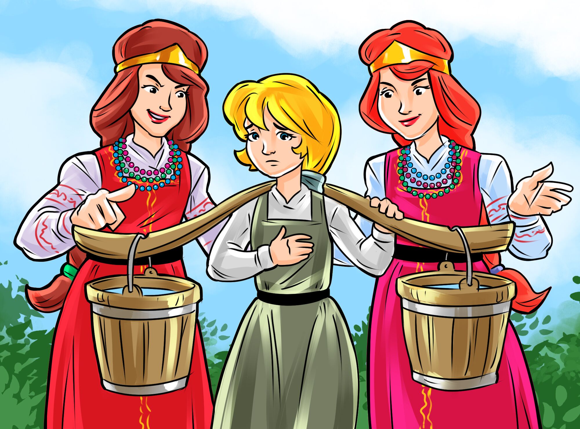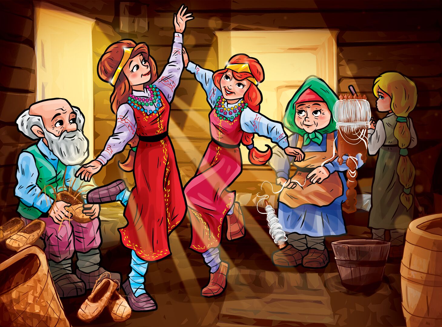 Привёз как-то Машеньке с ярмарки отец серебряное блюдечко и наливное яблочко. Покатила Машенька яблочко по блюдечку, сказала слова заветные – и явило блюдечко перед её взором бескрайние, прекрасные русские просторы. Сёстры старшие то диво увидали, и чёрная зависть их обуяла...