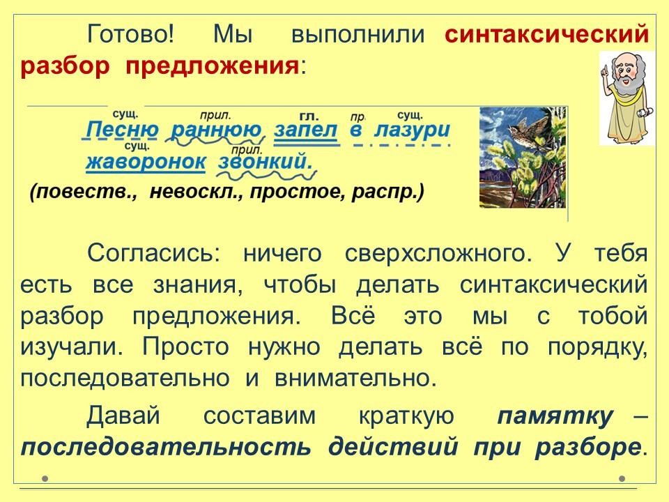 В данном уроке учимся делать полный синтаксический разбор предложения.