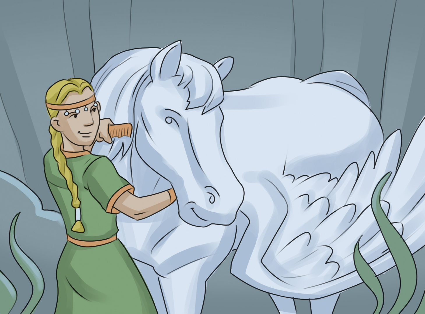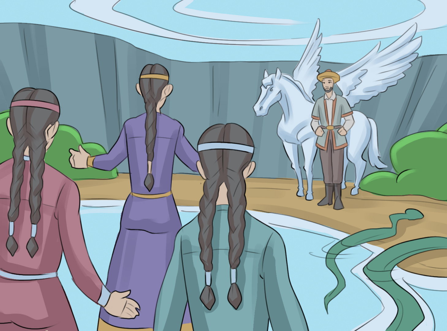 История крылатого коня Акбузата, который из любопытства слетел с неба на землю. А потом должен был служить людям, чтобы вернуться обратно на небо.