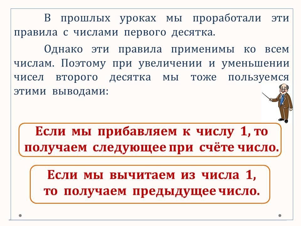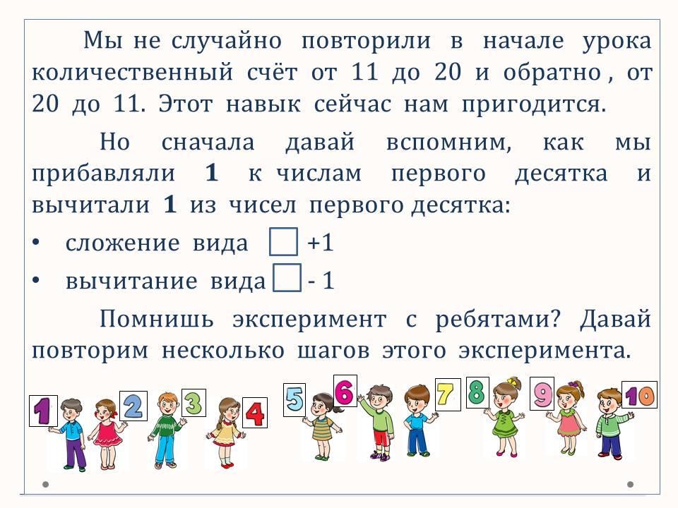 Программа 1 класса ОШ. Тренируемся увеличивать и уменьшать числа второго десятка на 1