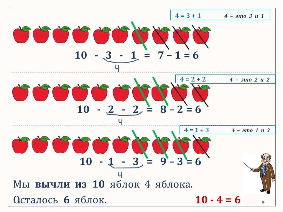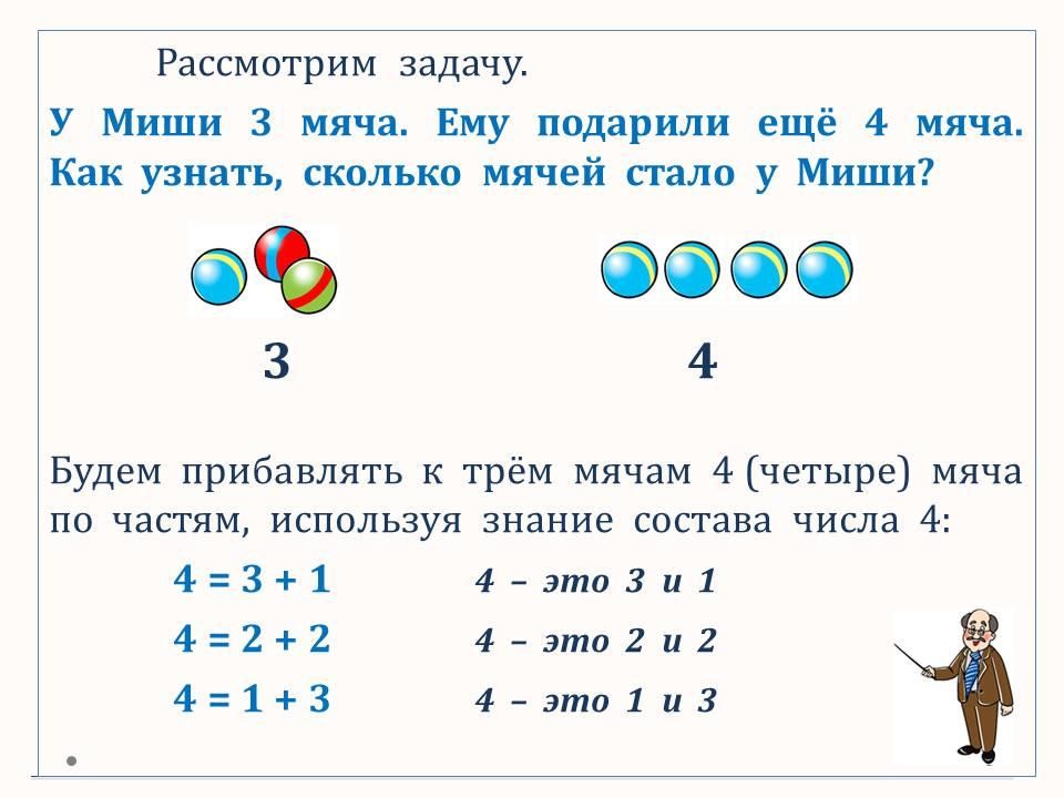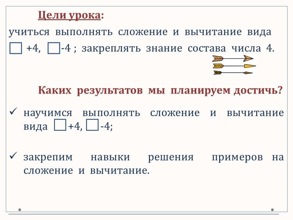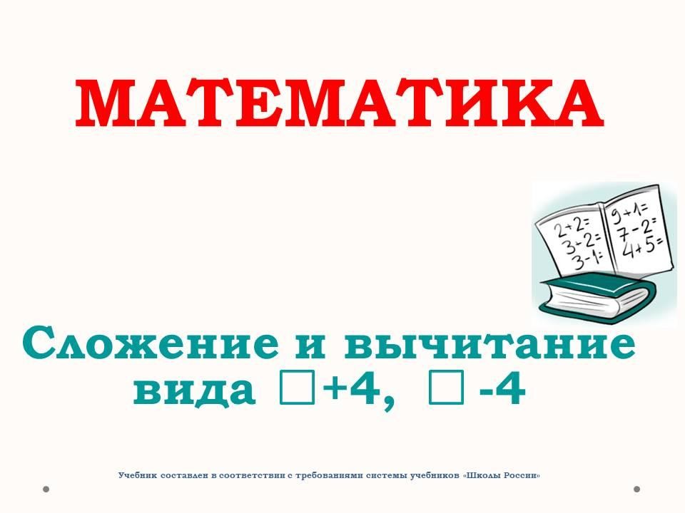 Программа 1 класса ОШ. В данном уроке учимся выполнять сложение и вычитание вида ...+4, ...-4