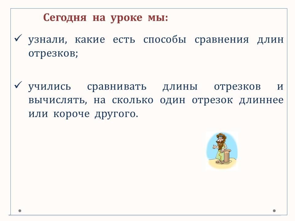 Программа 1 класса ОШ. В данном уроке знакомимся со способами сравнения отрезков и учимся сравнивать из длины