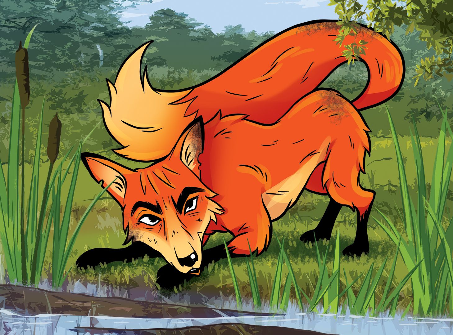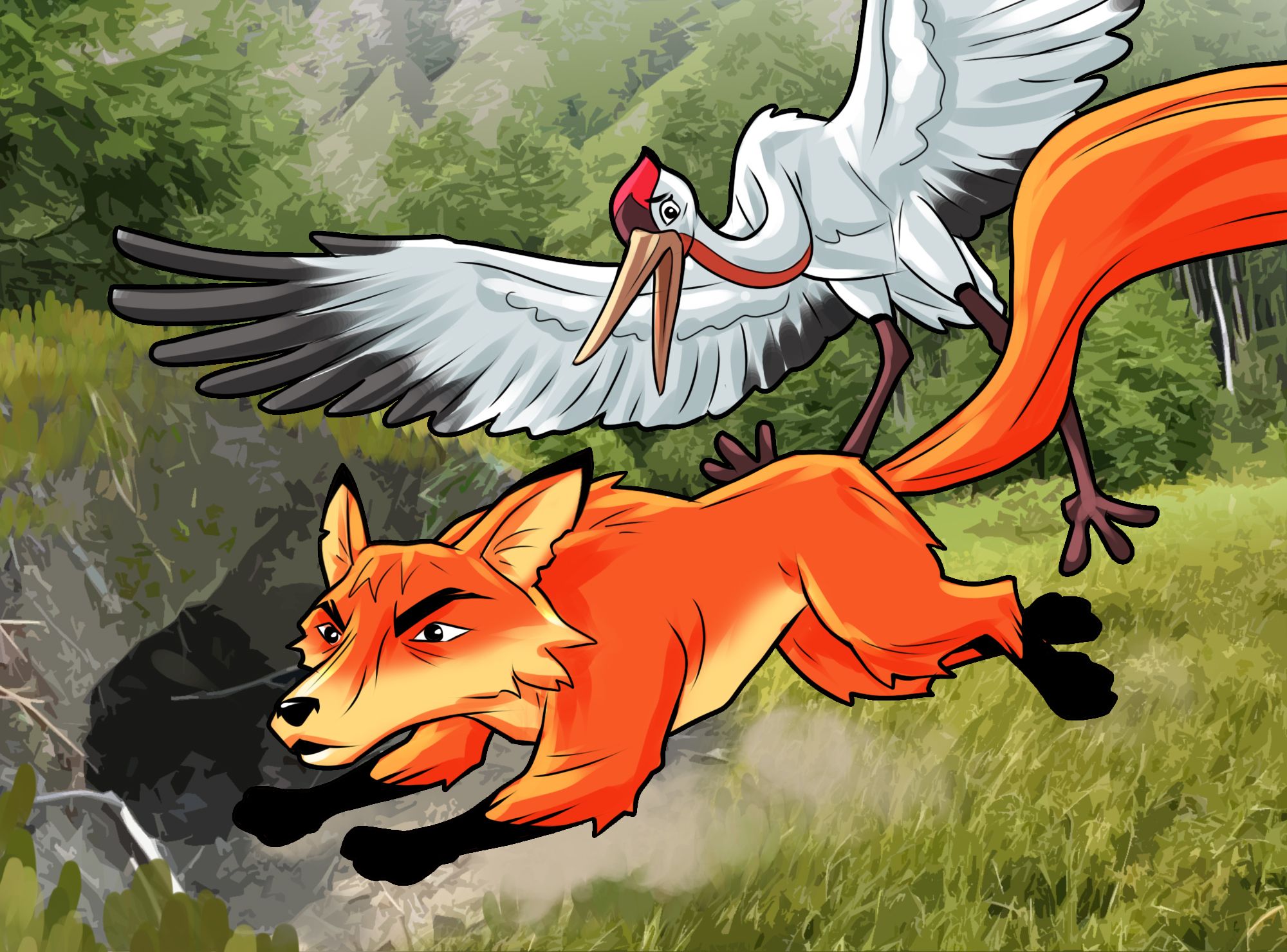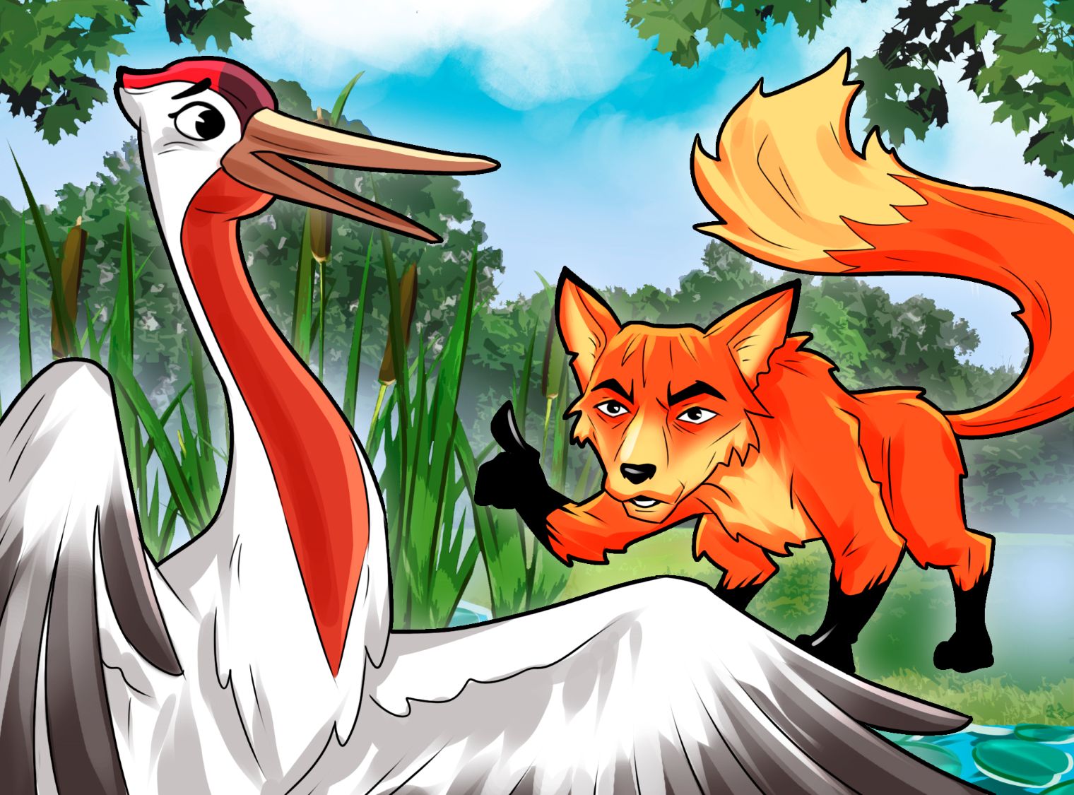 Как-то раз лиса перед журавлём расхвасталась – мол, у неё и руки-ноги сильные, и зубы острые, и хвост пушистые, и развеликий ум. Журавль оглядел себя, а у него ничего-то и нет. Опечалился журавль, повесил голову. Но тут заявился охотник, и...