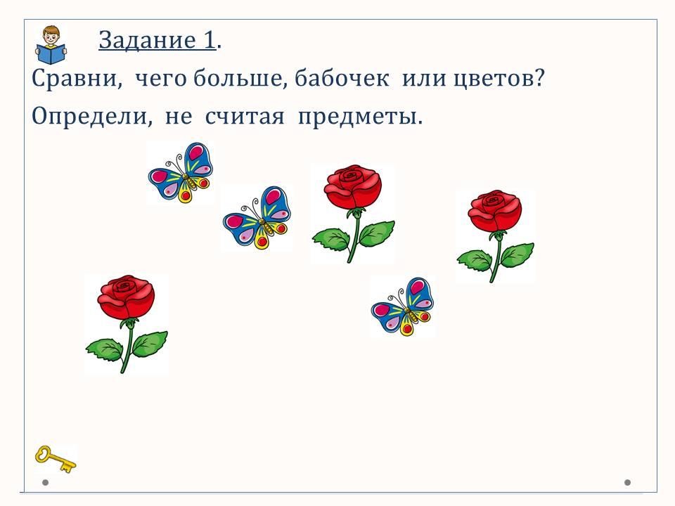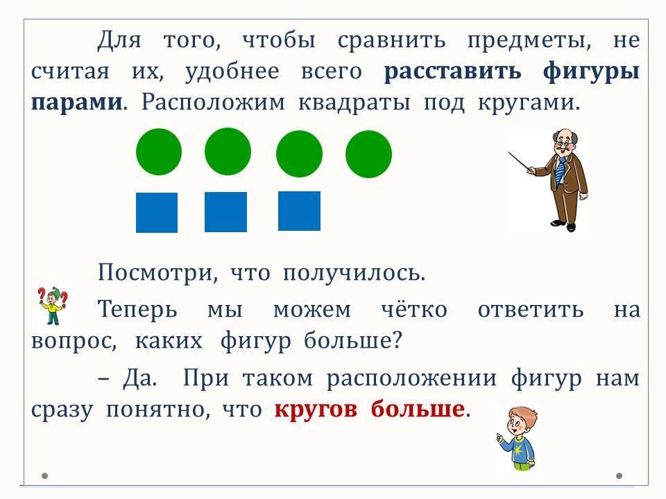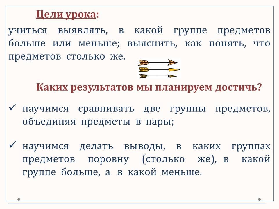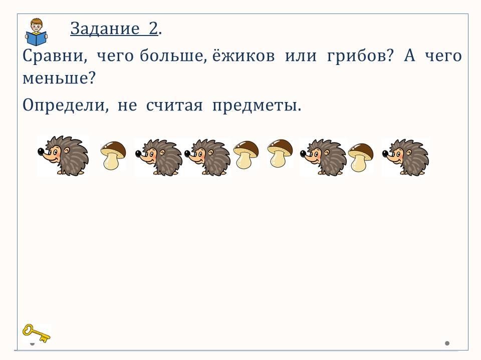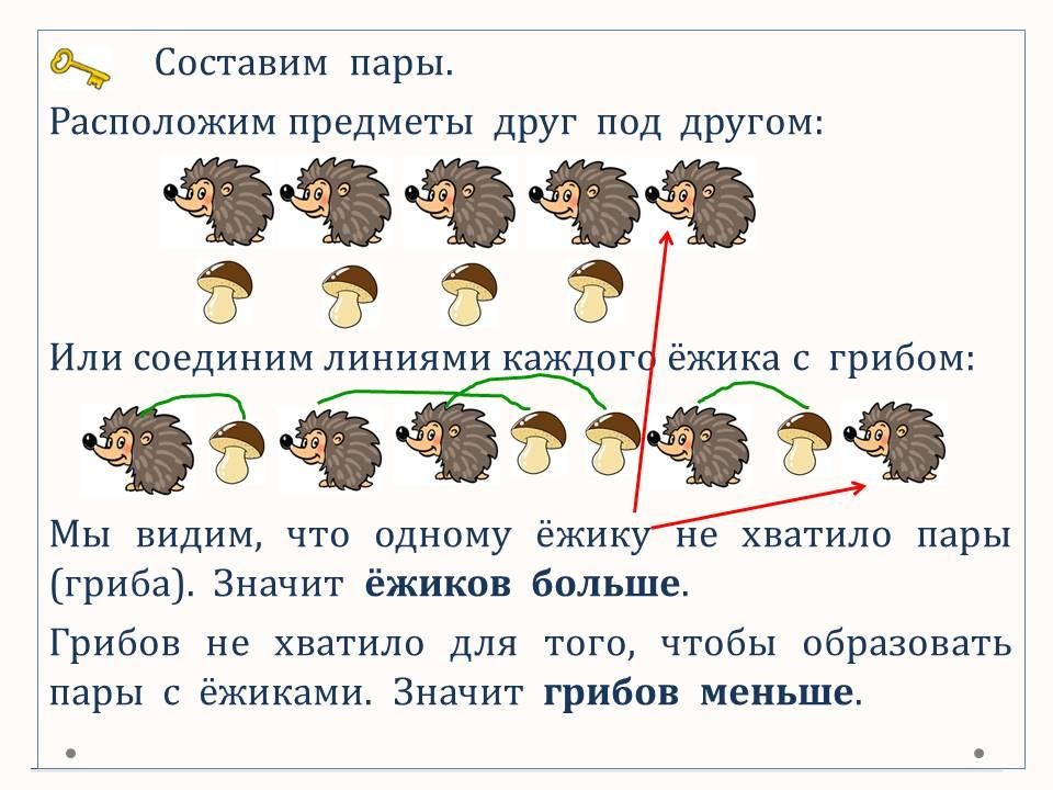 Учимся сравнивать количество предметов в группах, не считая предметы. Делаем выводы: столько же, больше, меньше.