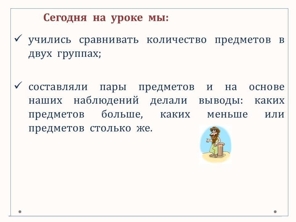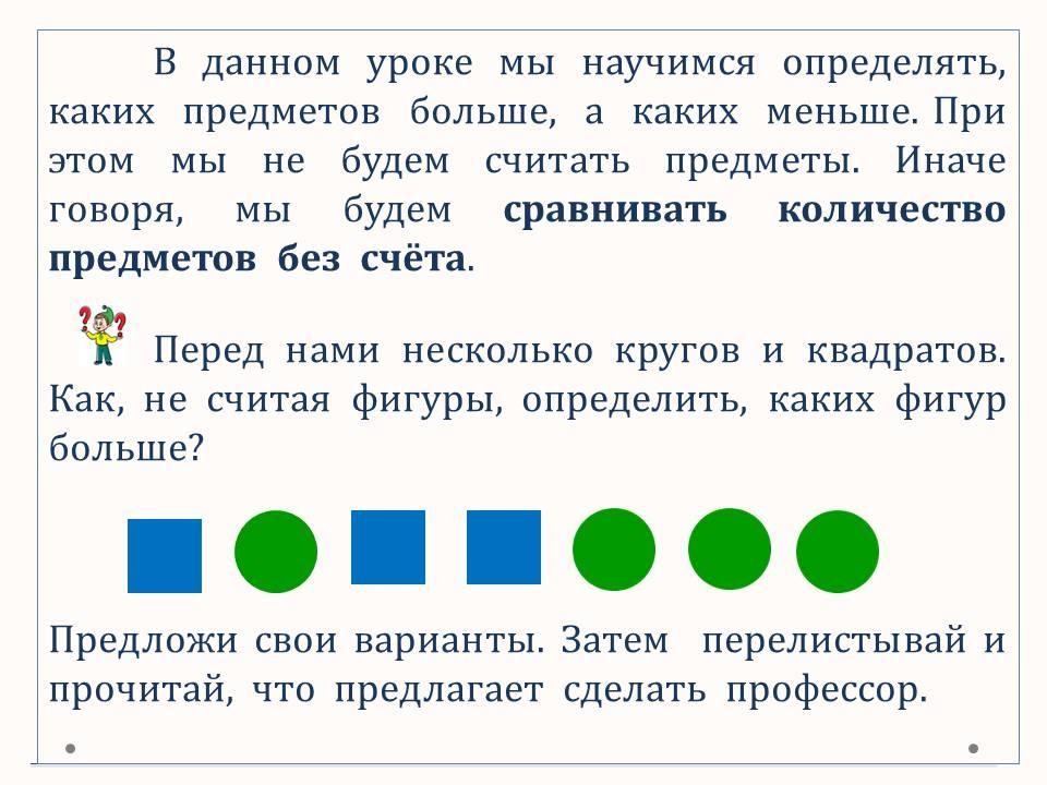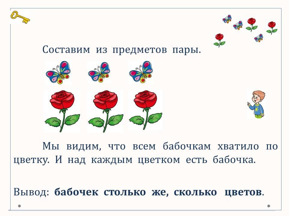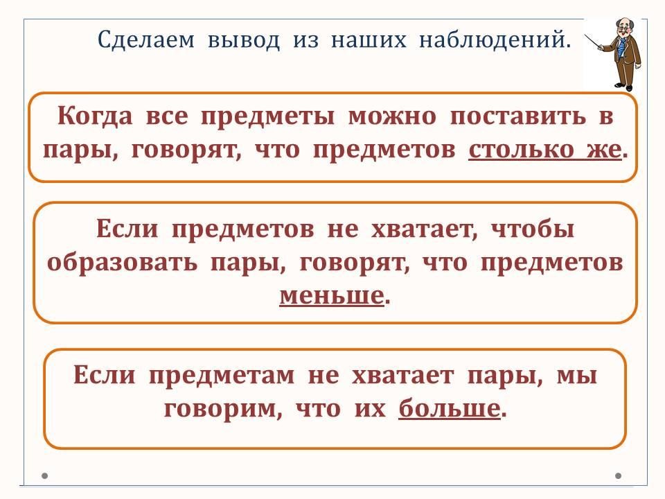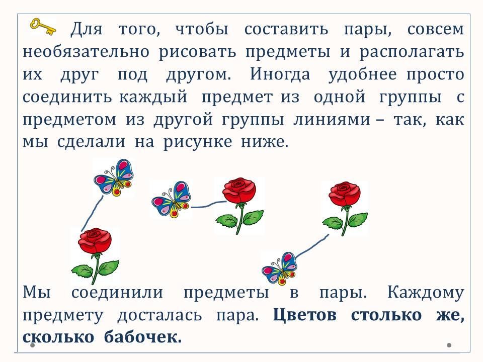 Учимся сравнивать количество предметов в группах, не считая предметы. Делаем выводы: столько же, больше, меньше.