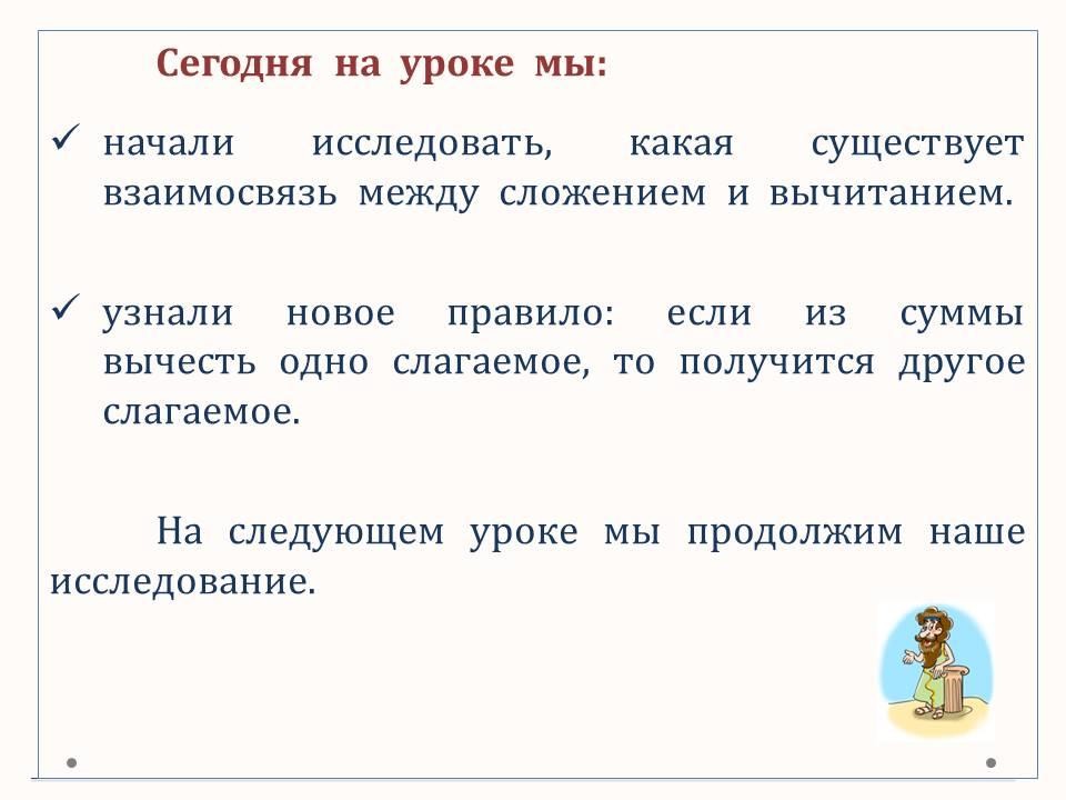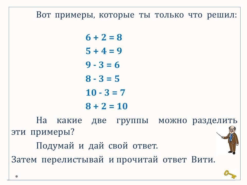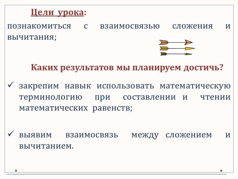 Программа 1 класса ОШ. В данном уроке устанавливаем взаимосвязь между действиями сложения и вычитания