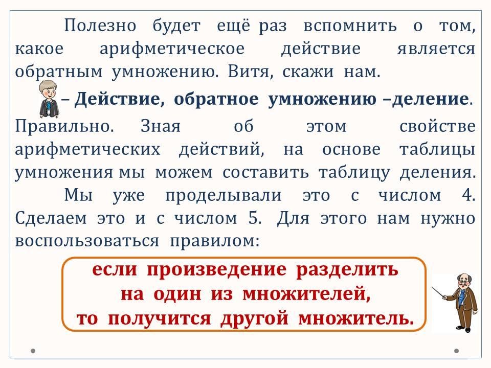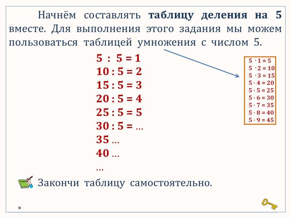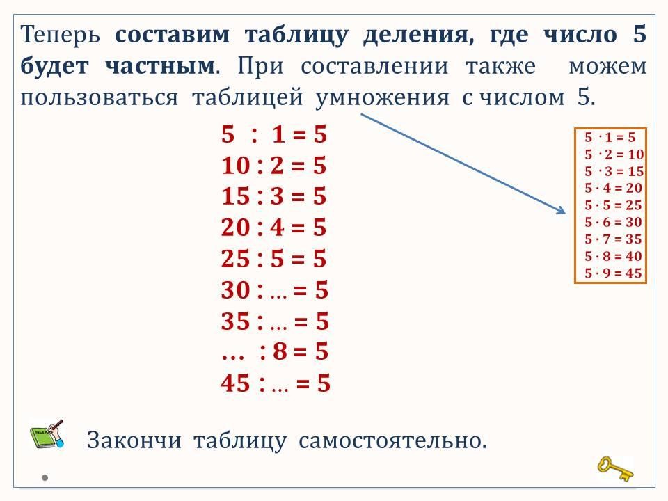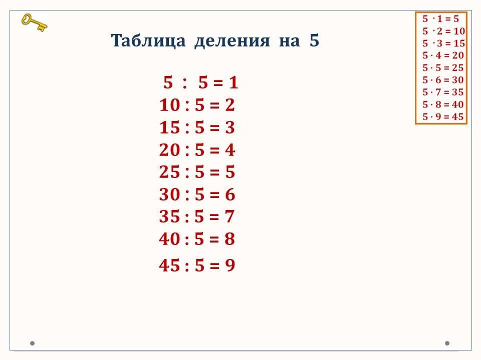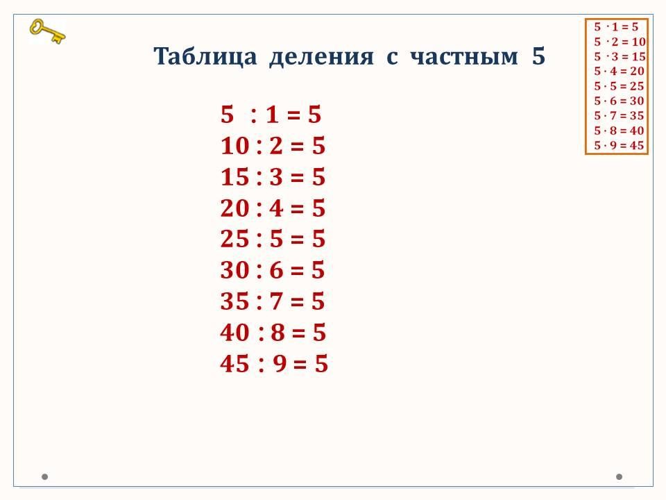 Таблица умножения и деления с числом 5.