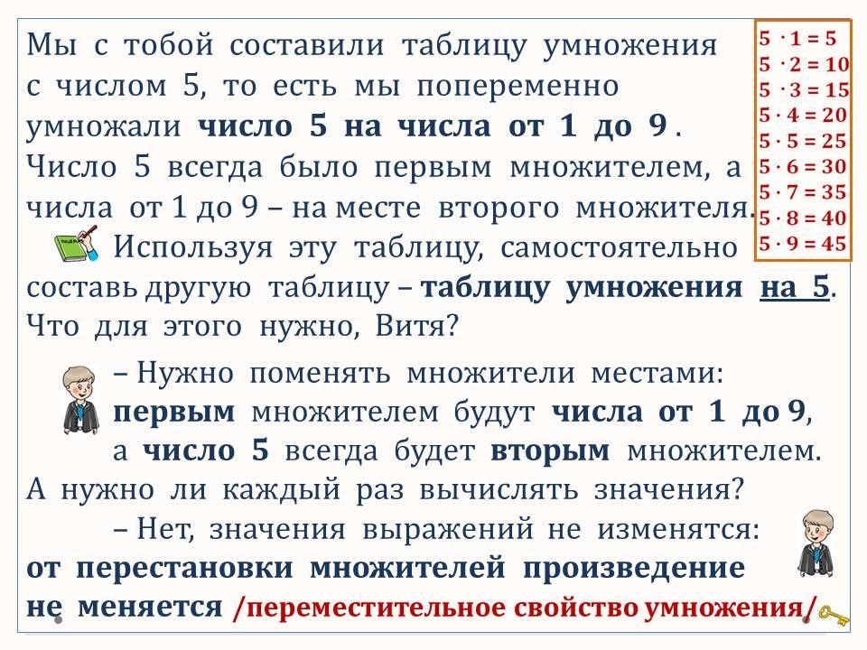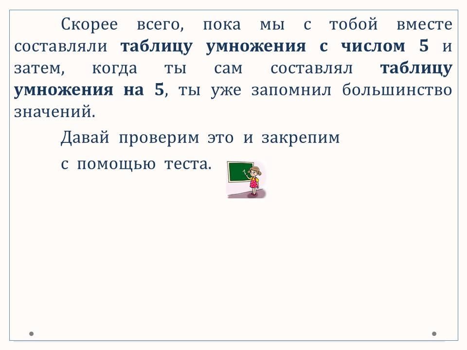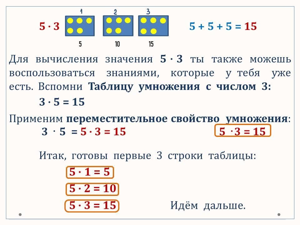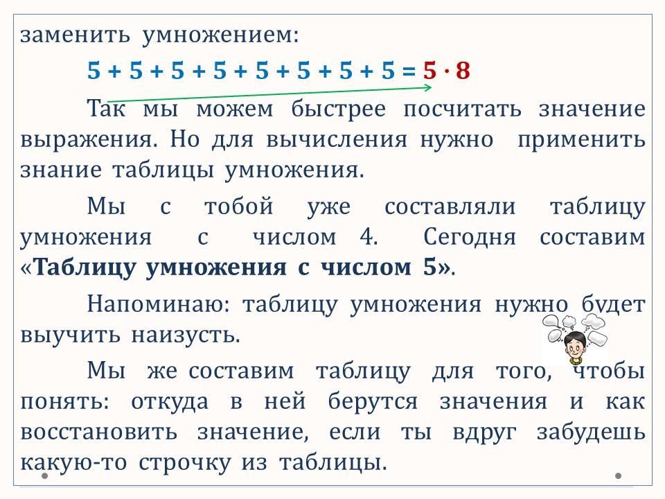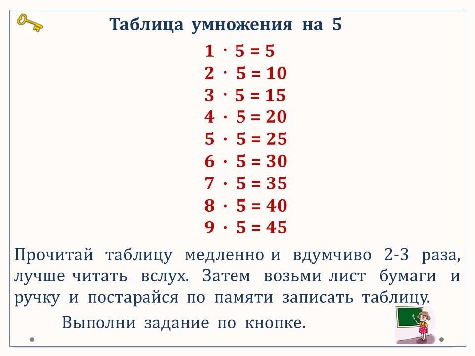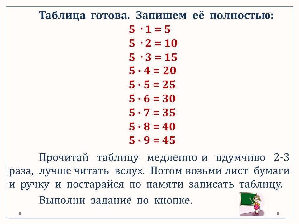 таблица умножения с числом 5