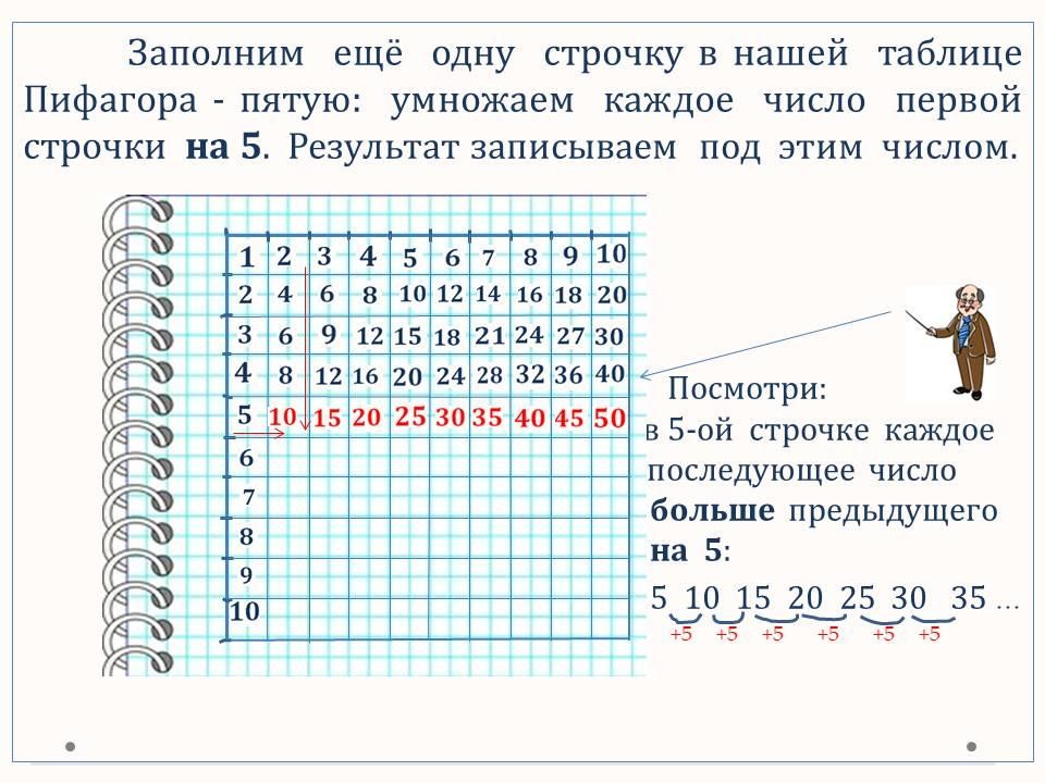 таблица умножения на 5
