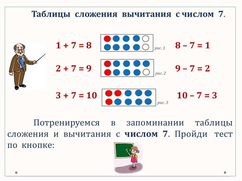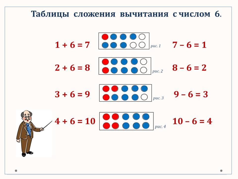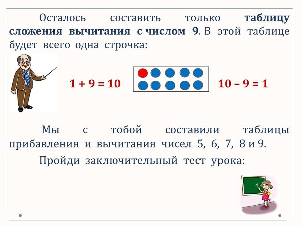 Таблицы сложения и вычитания с числами 5, 6, 7, 8, 9