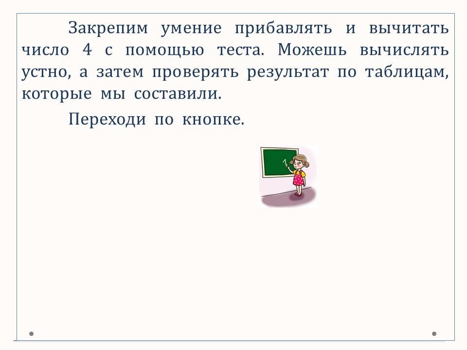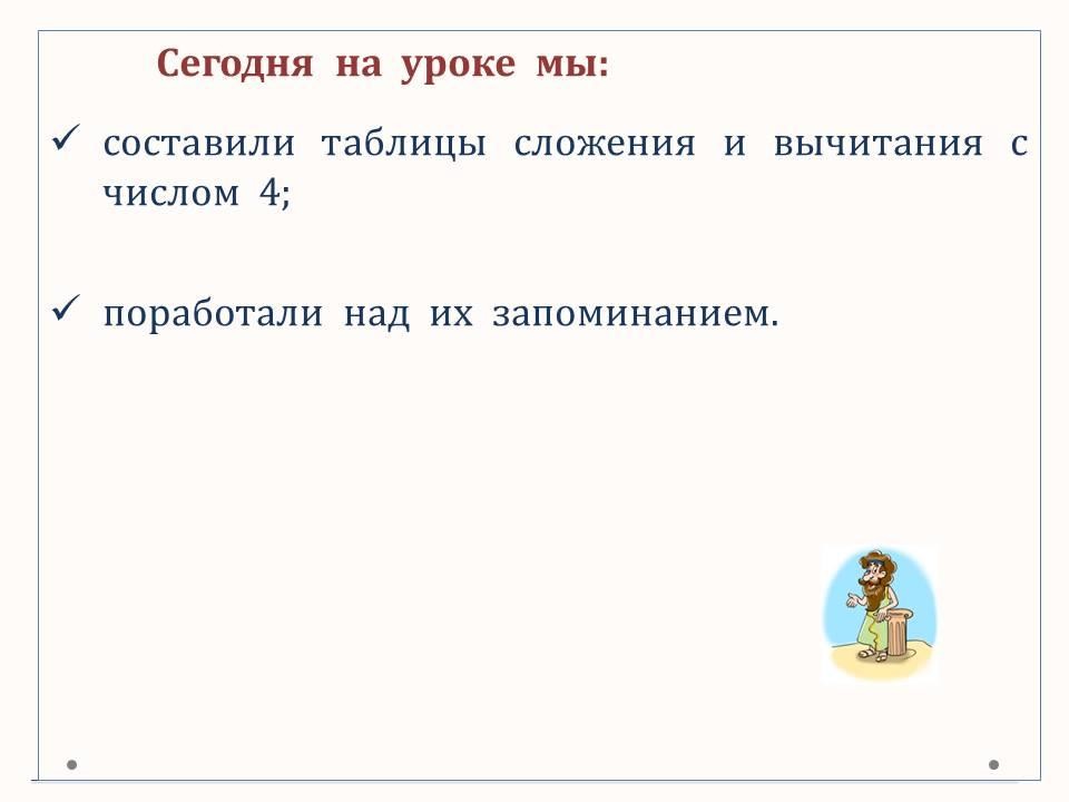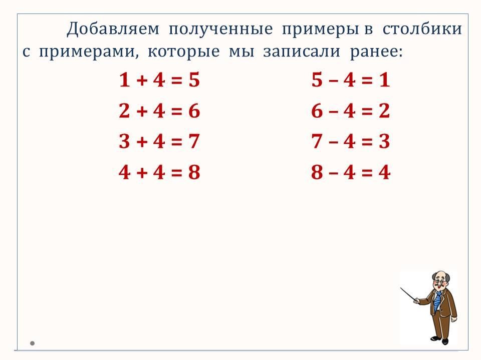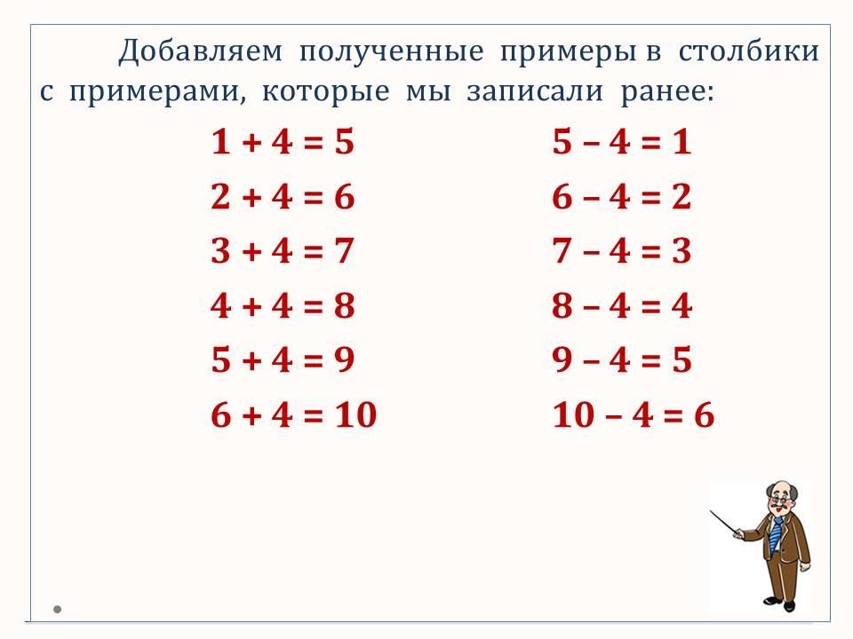 Программа 1 класса ОШ. В данном уроке мы вместе составляем таблицы сложения и вычитания с числом 4 и работаем над их запоминанием.
