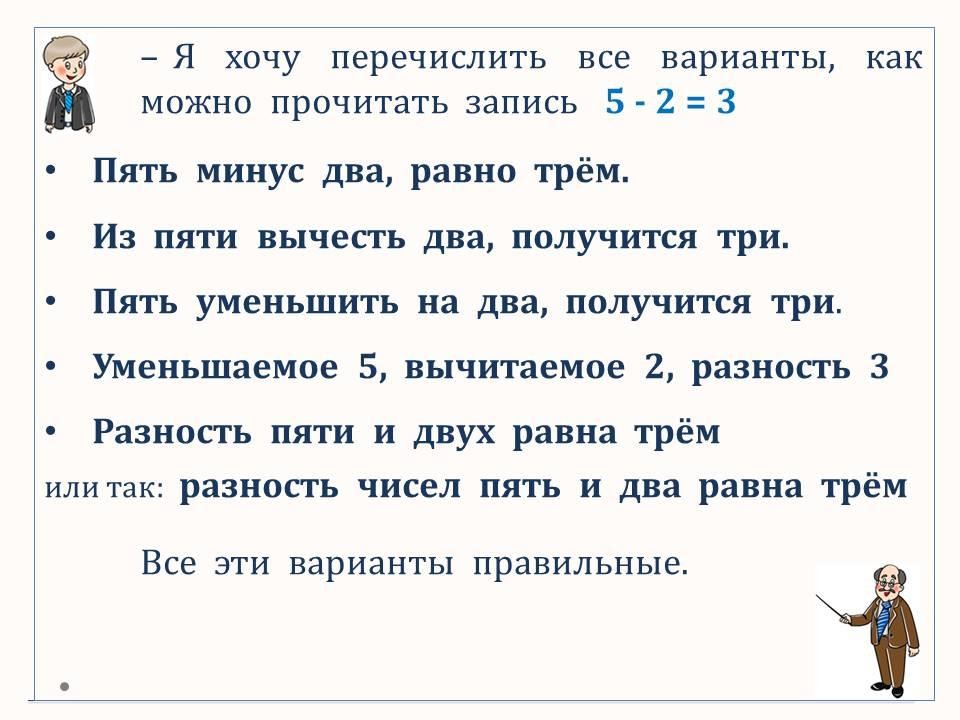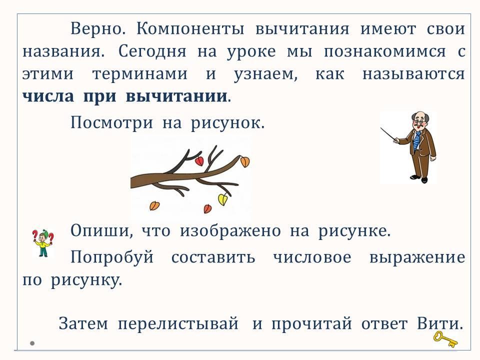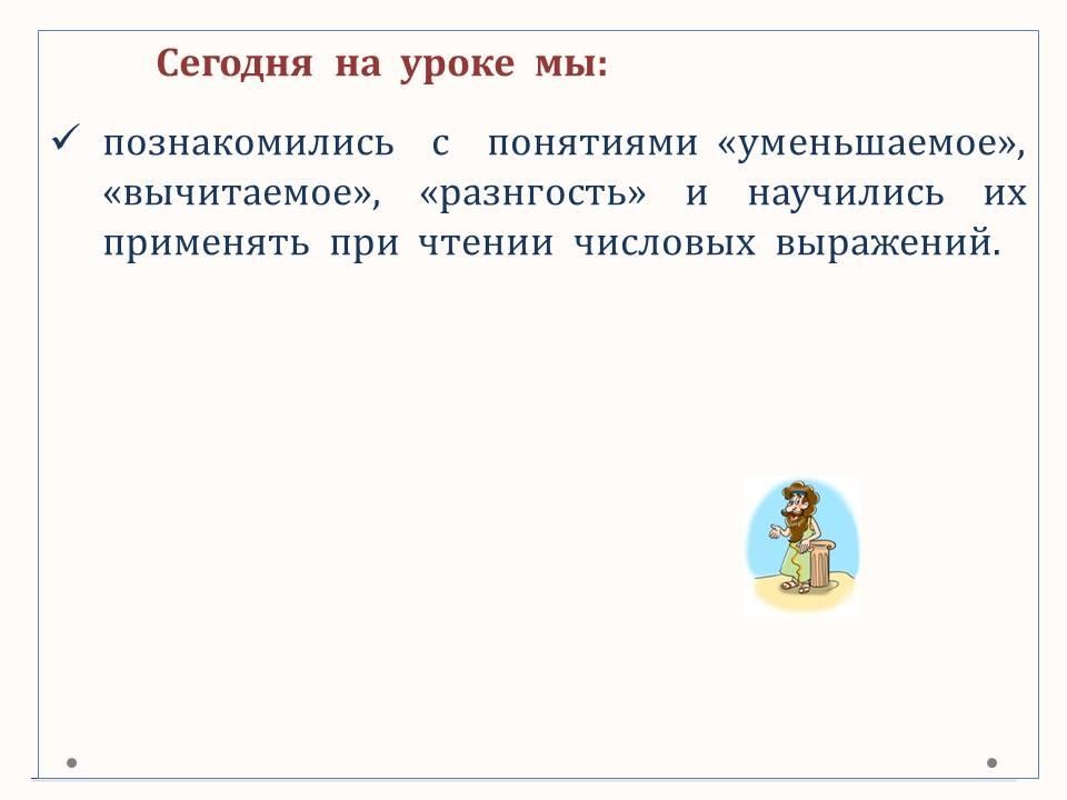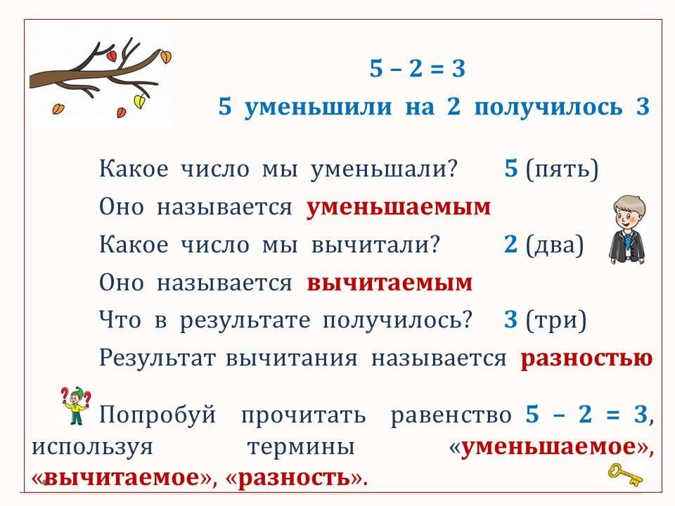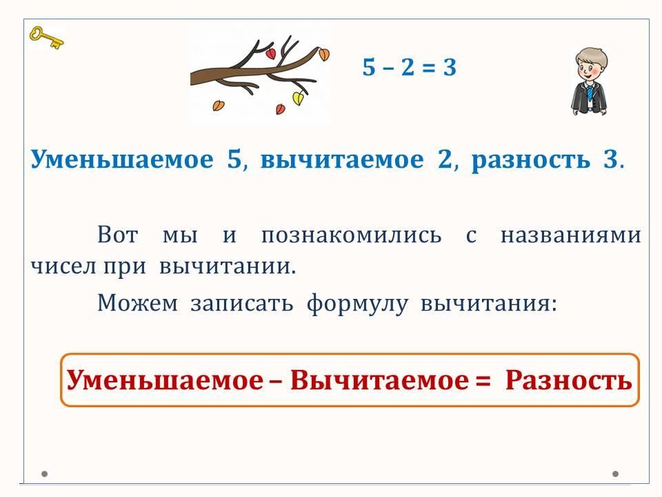 Программа 1 класса ОШ. Знакомимся с терминами вычитания: уменьшаемое, вычитаемое, разность