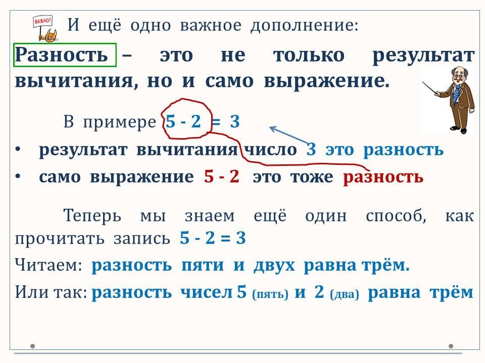 Уменьшаемое. Вычитаемое. Разность