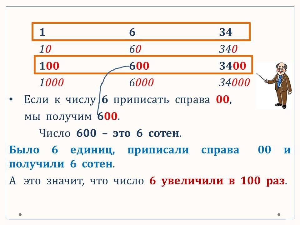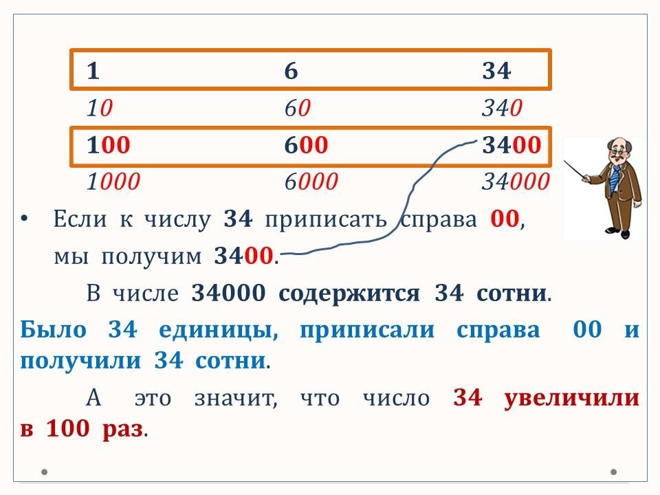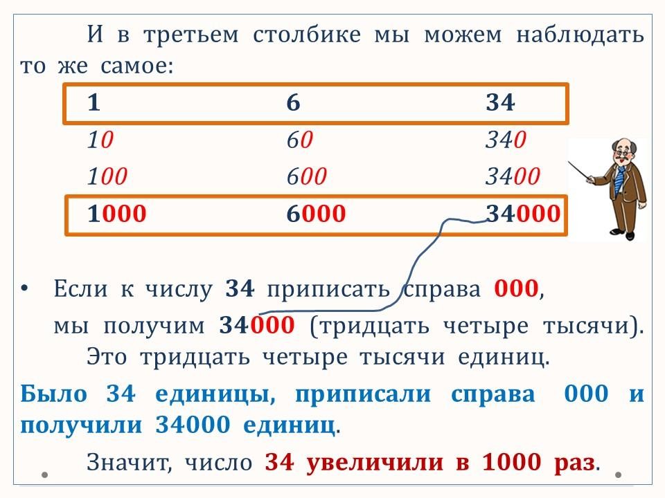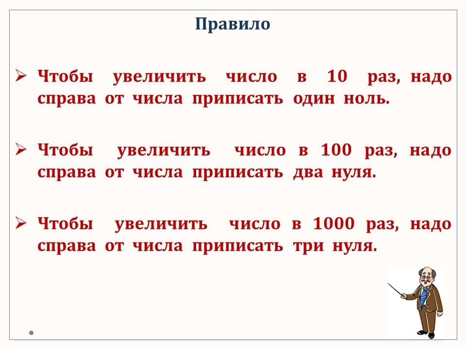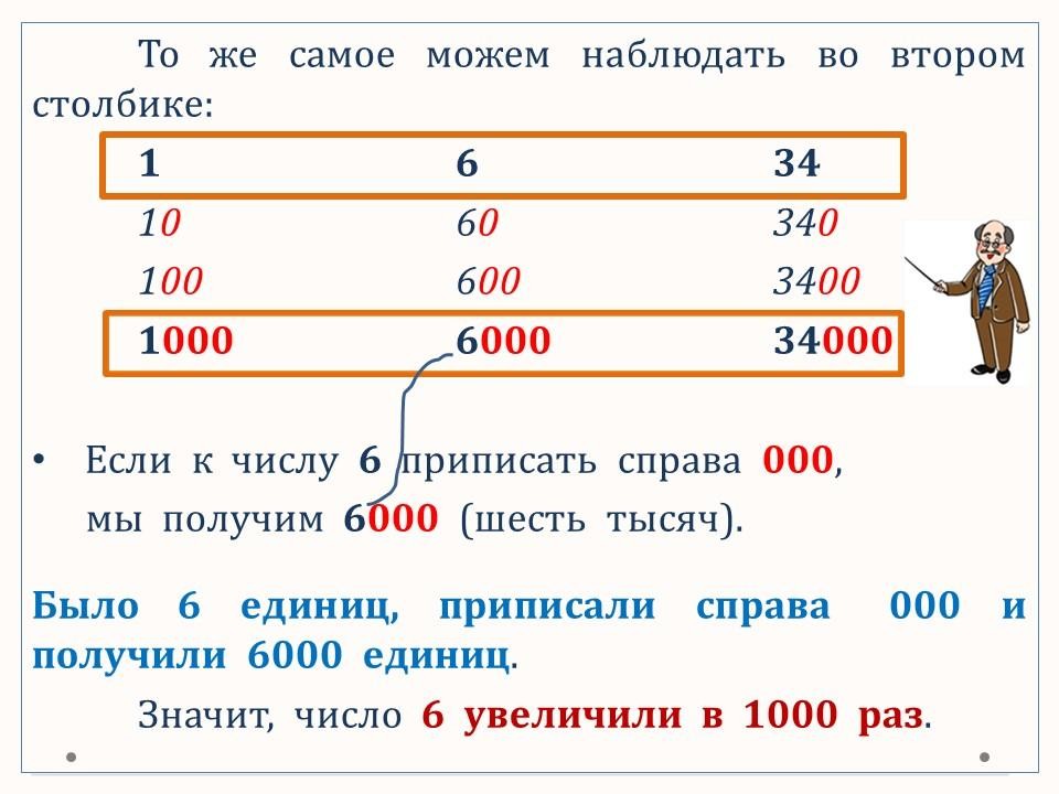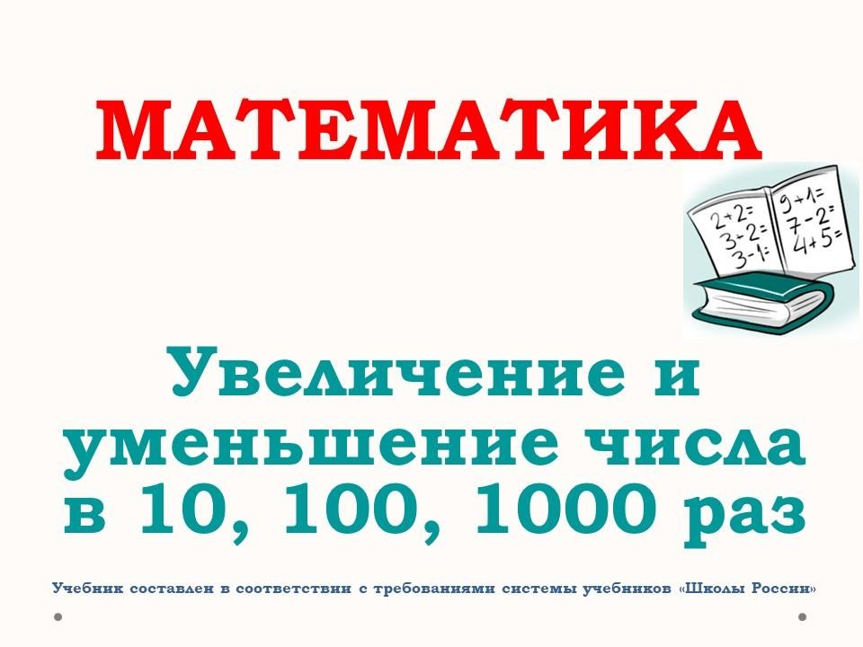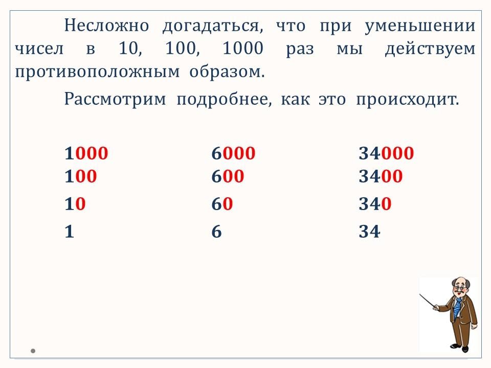 Увеличение и уменьшение числа в 10, 100, 1000 раз (4 класс)