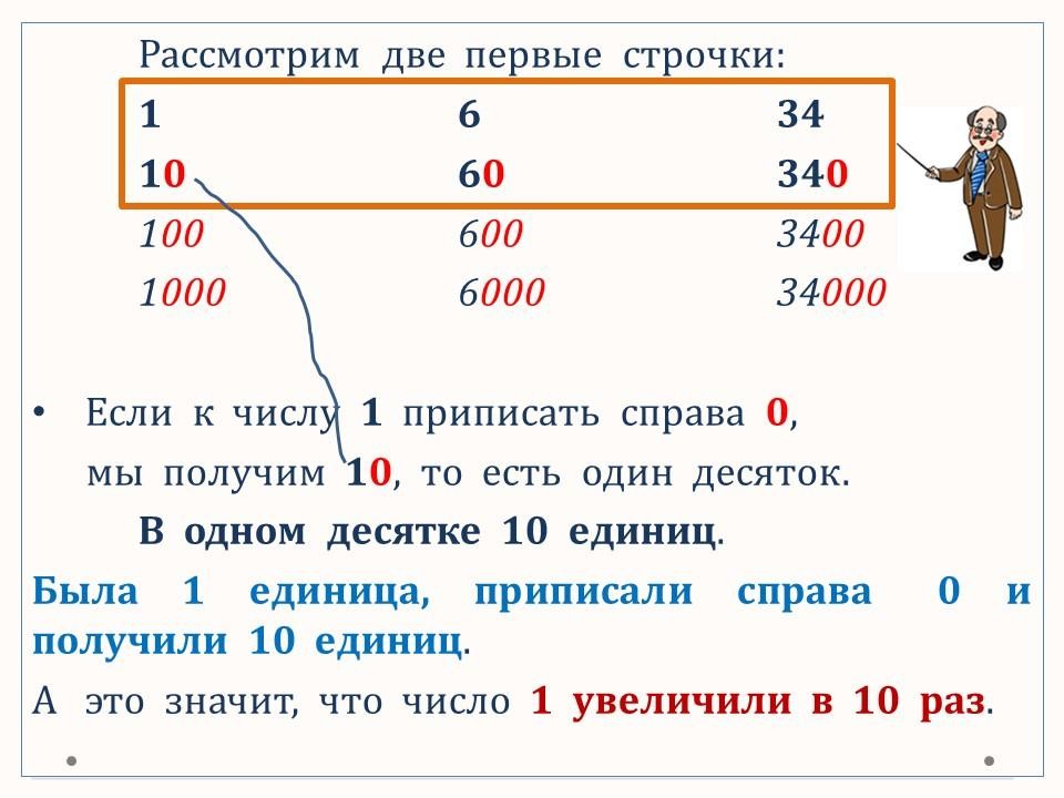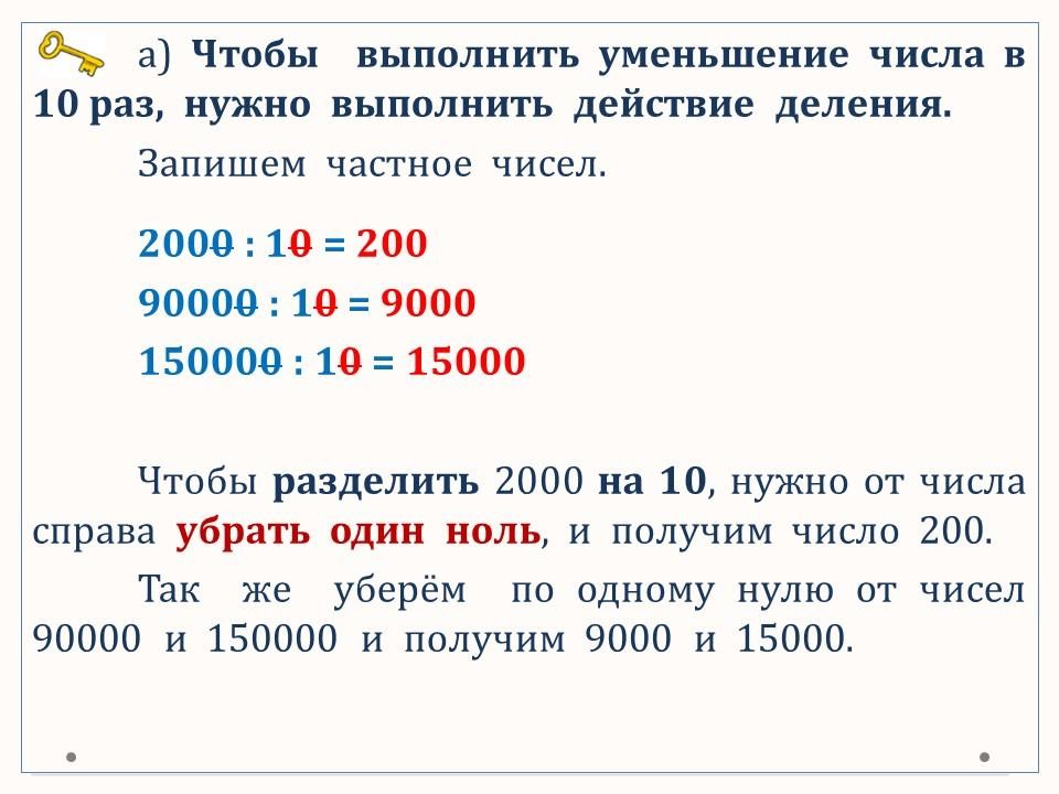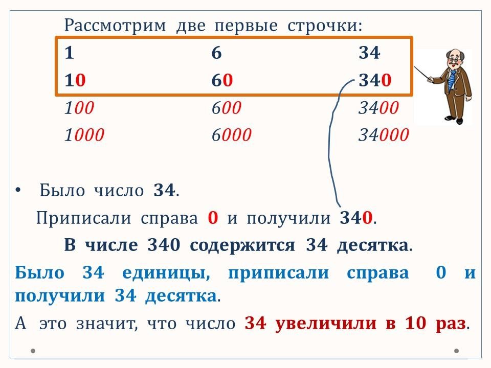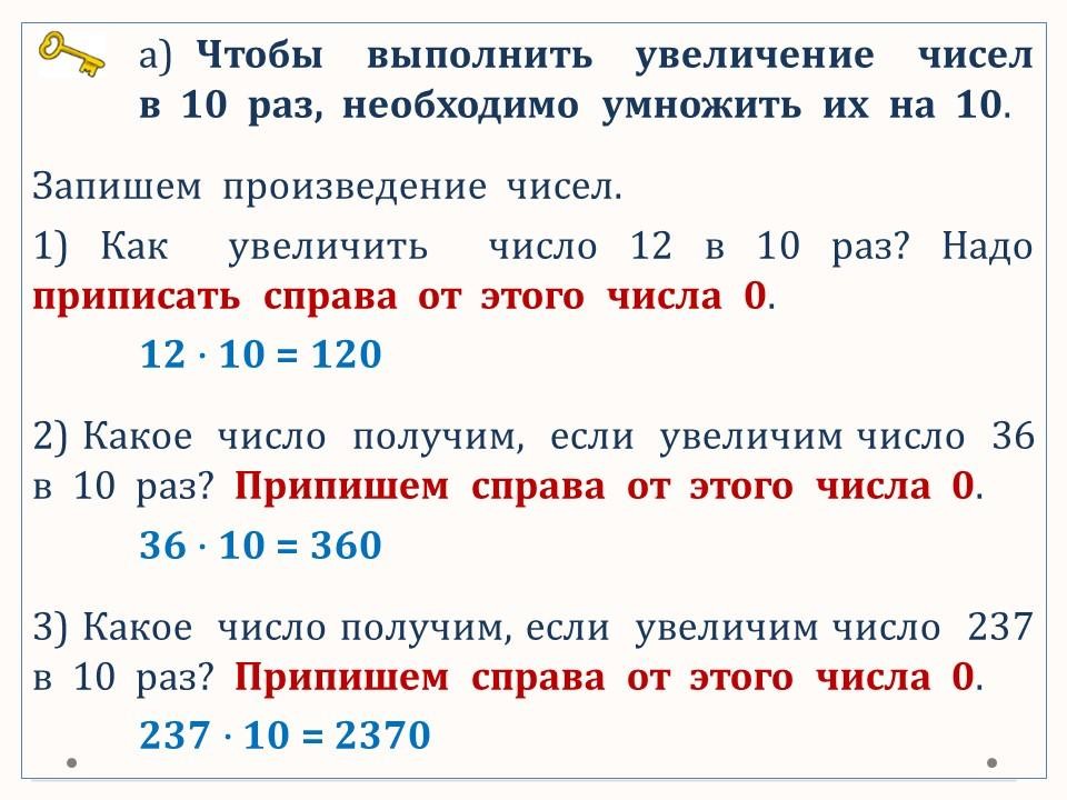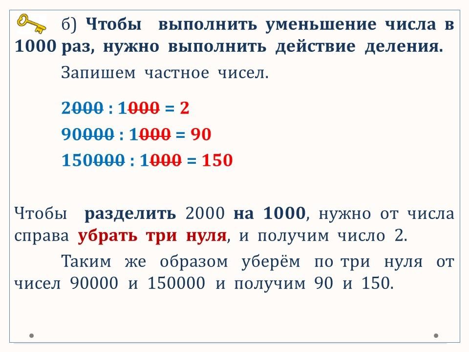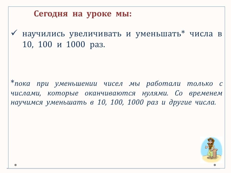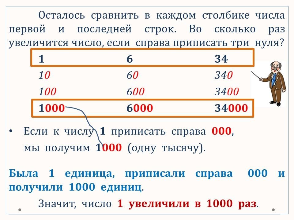 Увеличение и уменьшение числа в 10, 100, 1000 раз (4 класс)