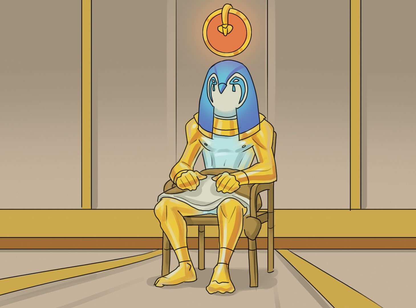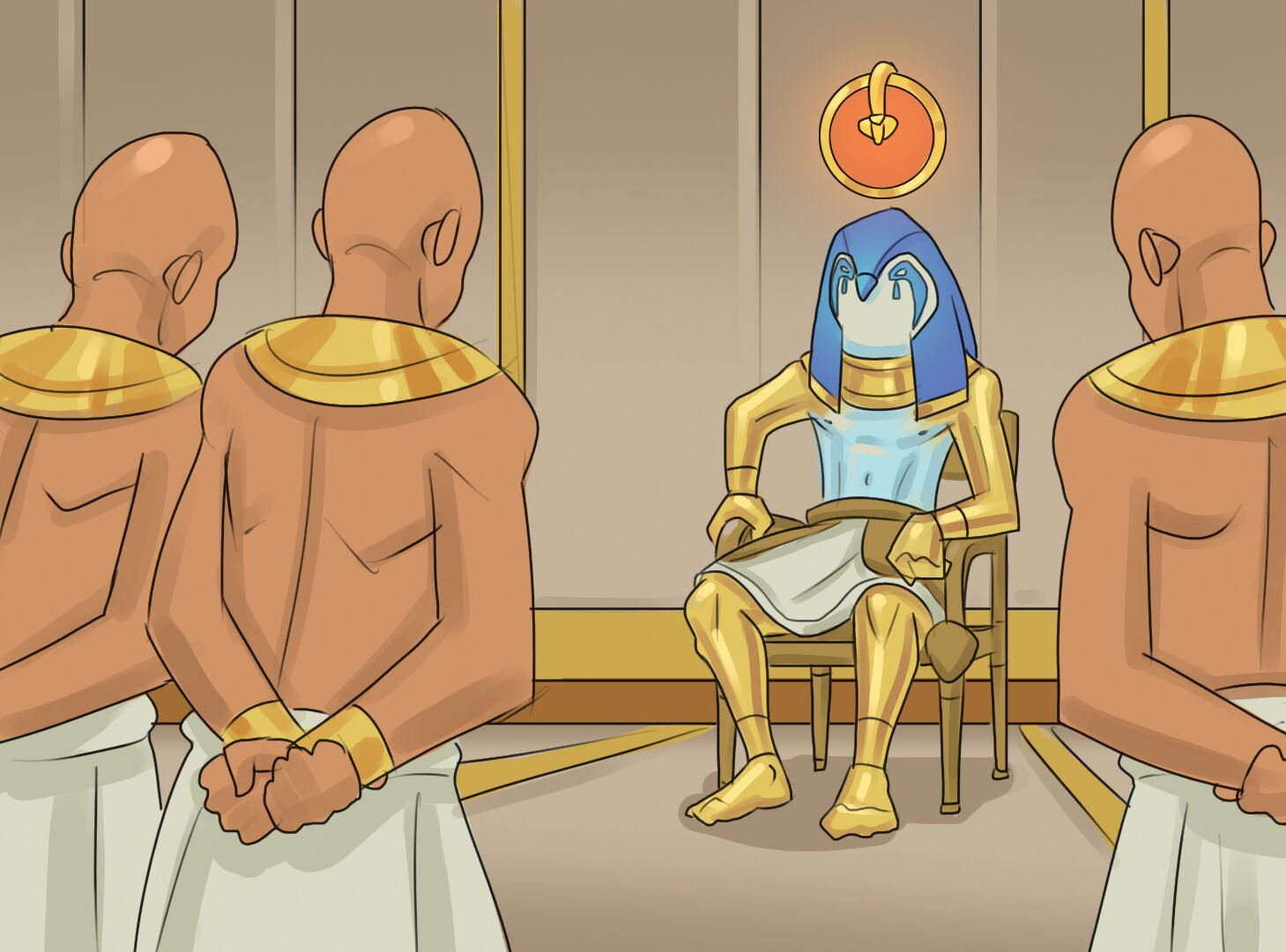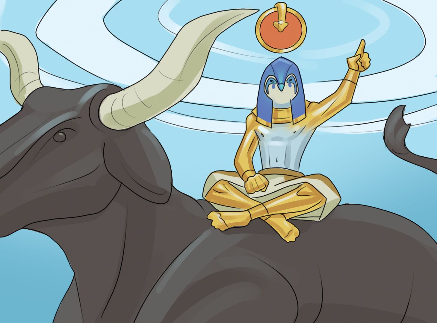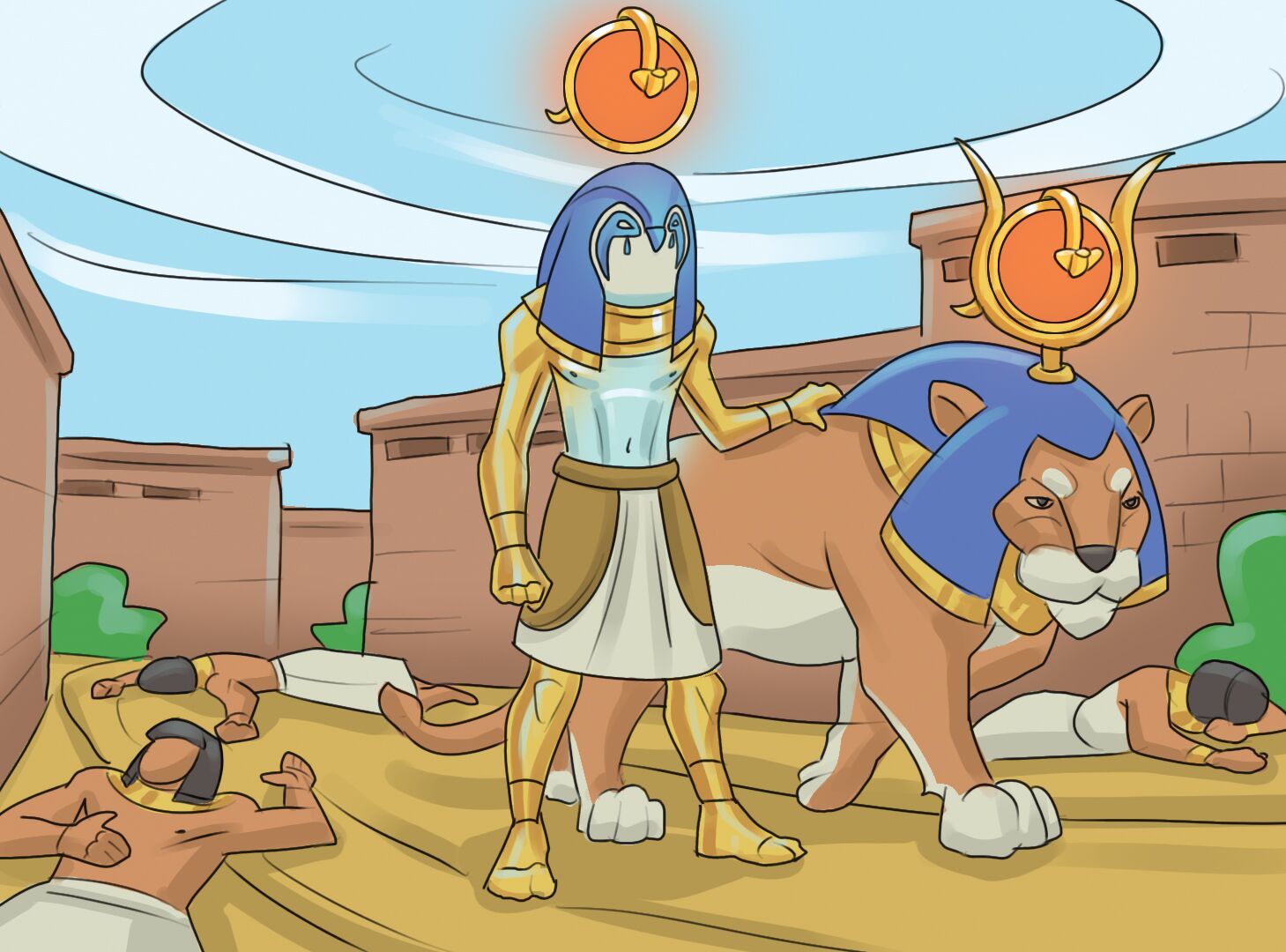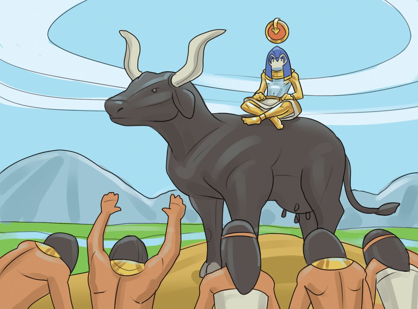 История о том, как состарившийся бог Солнца Ра решил покинуть землю и уйти на небеса.