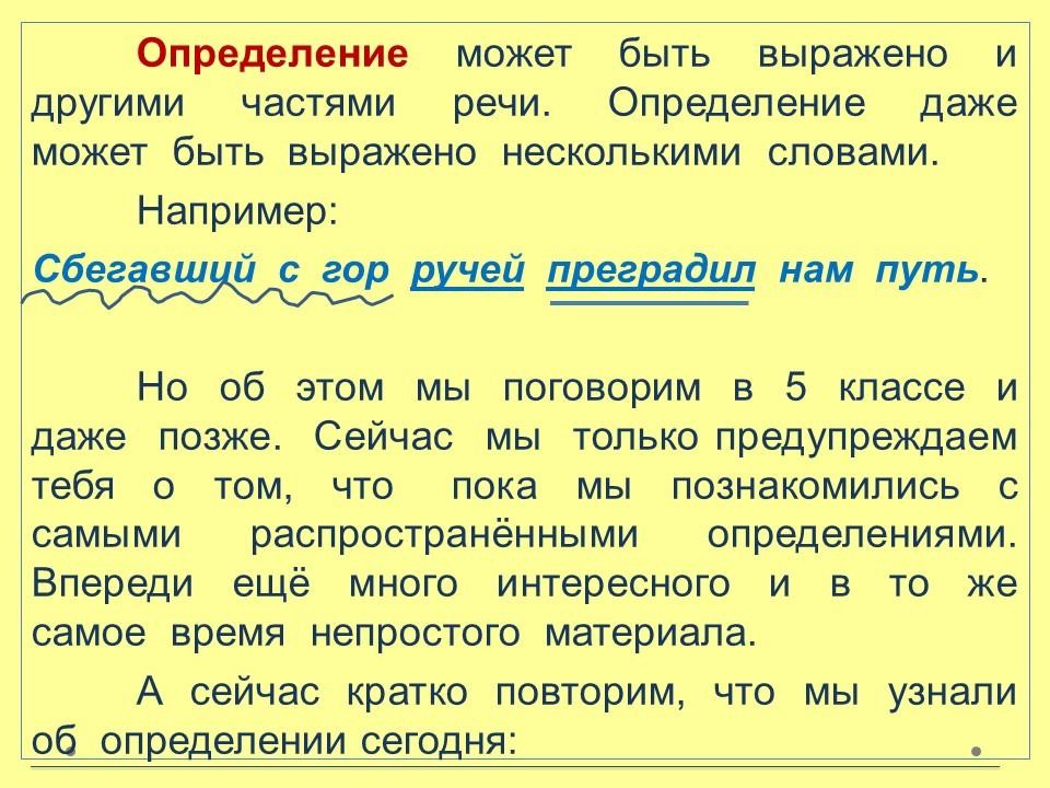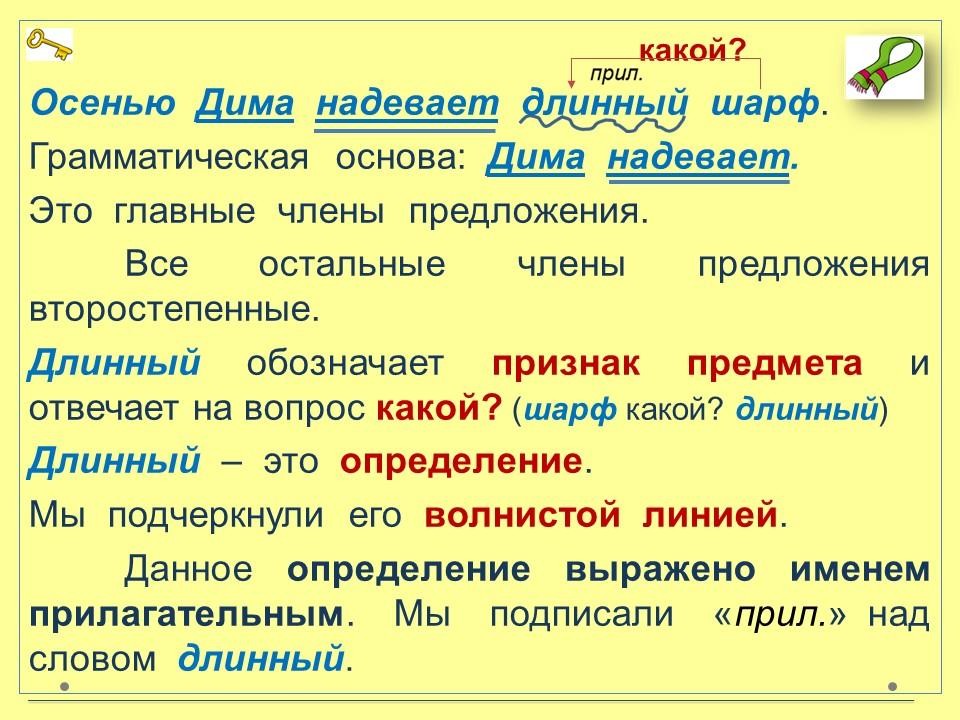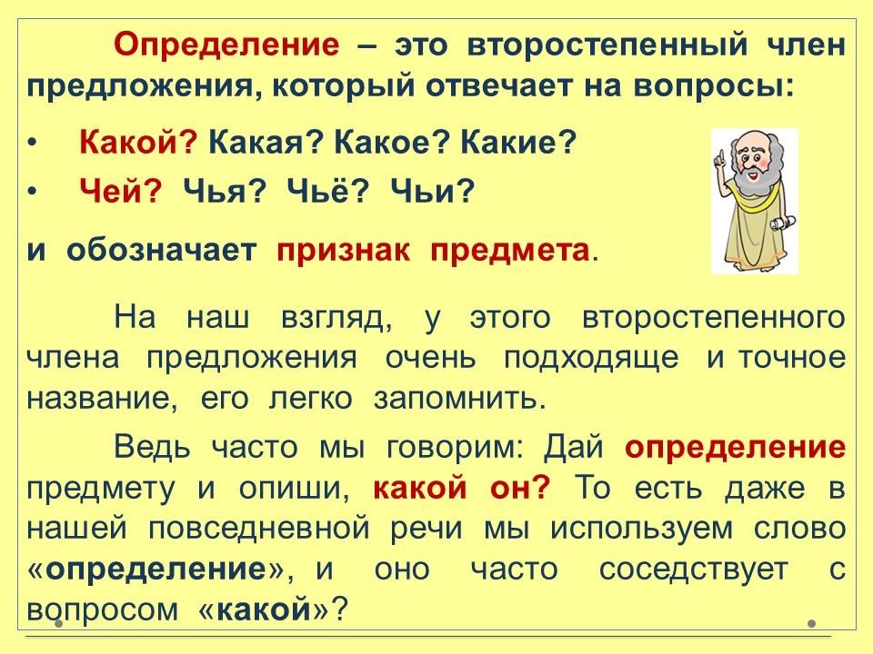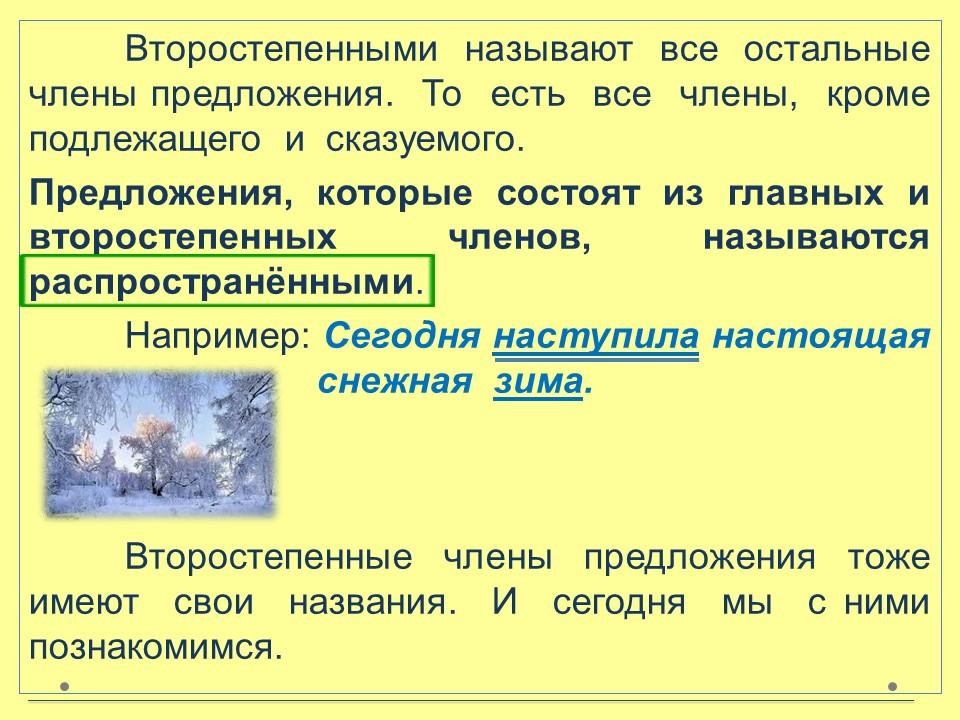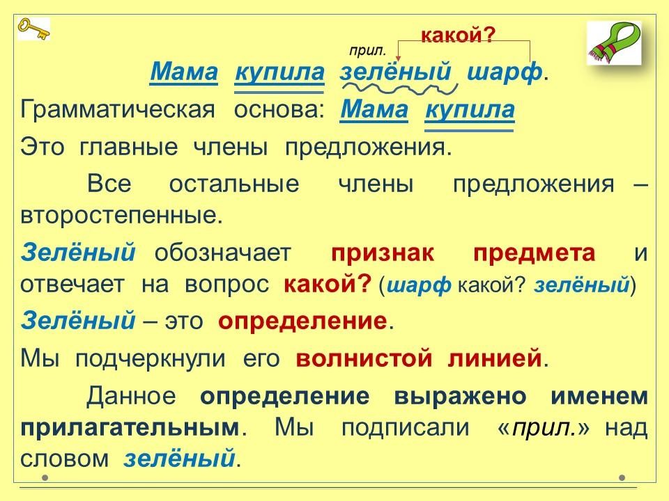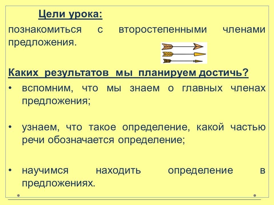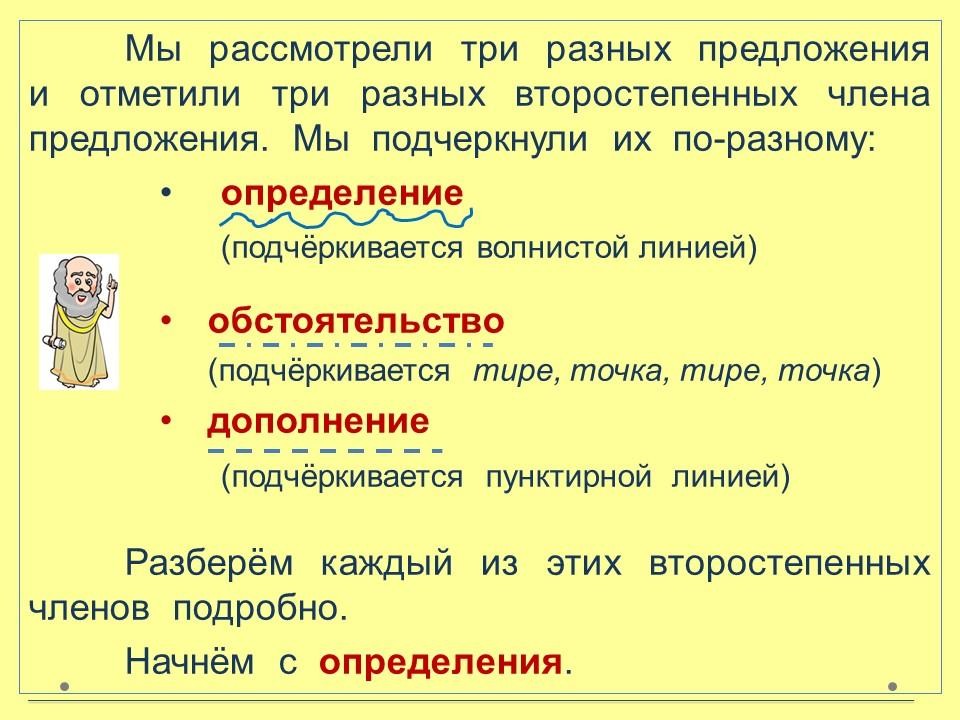 Знакомство с второстепенными членами предложения начинаем с определения.