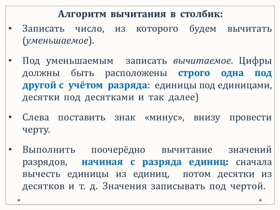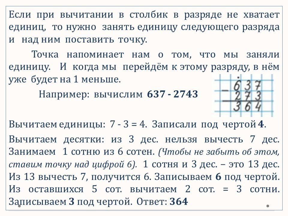 Вычитание в столбик