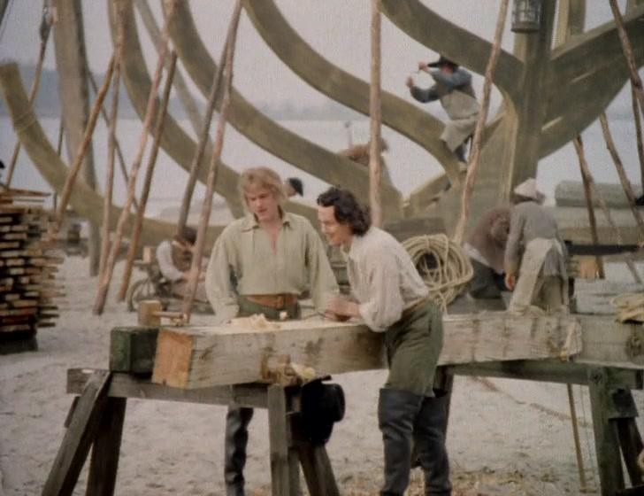 На следующий день Пётр купил инструменты. И нанялся на работу плотником на верфи. Вместе с другими знатными русскими он обучался корабельному делу.