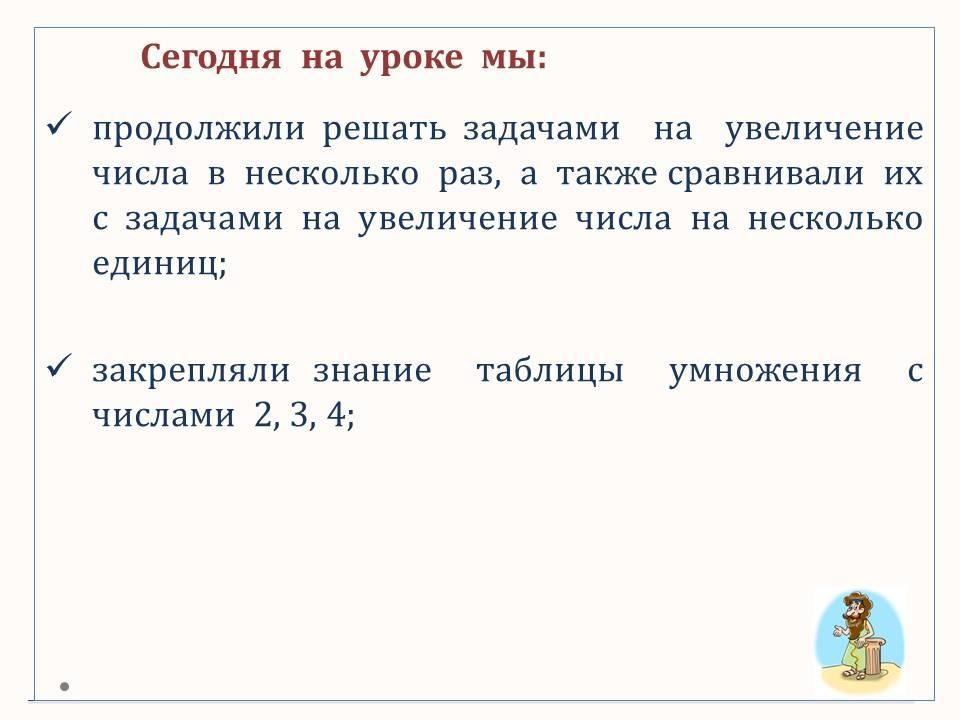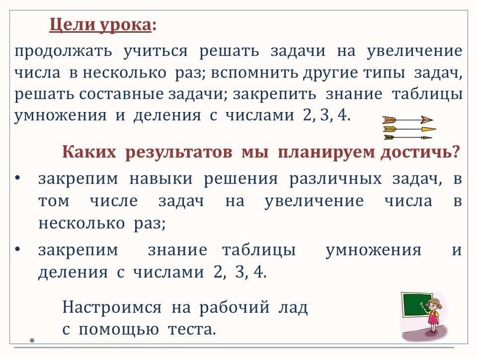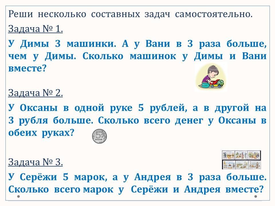 Программа 3 класса ОШ. В этом уроке продолжаем решать задачи на увеличение числа в несколько раз, а также другие типы задач, в том числе составные