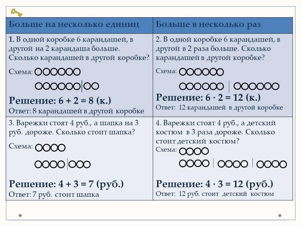 Закрепление: "Увеличить на ...", "Увеличить в несколько раз"