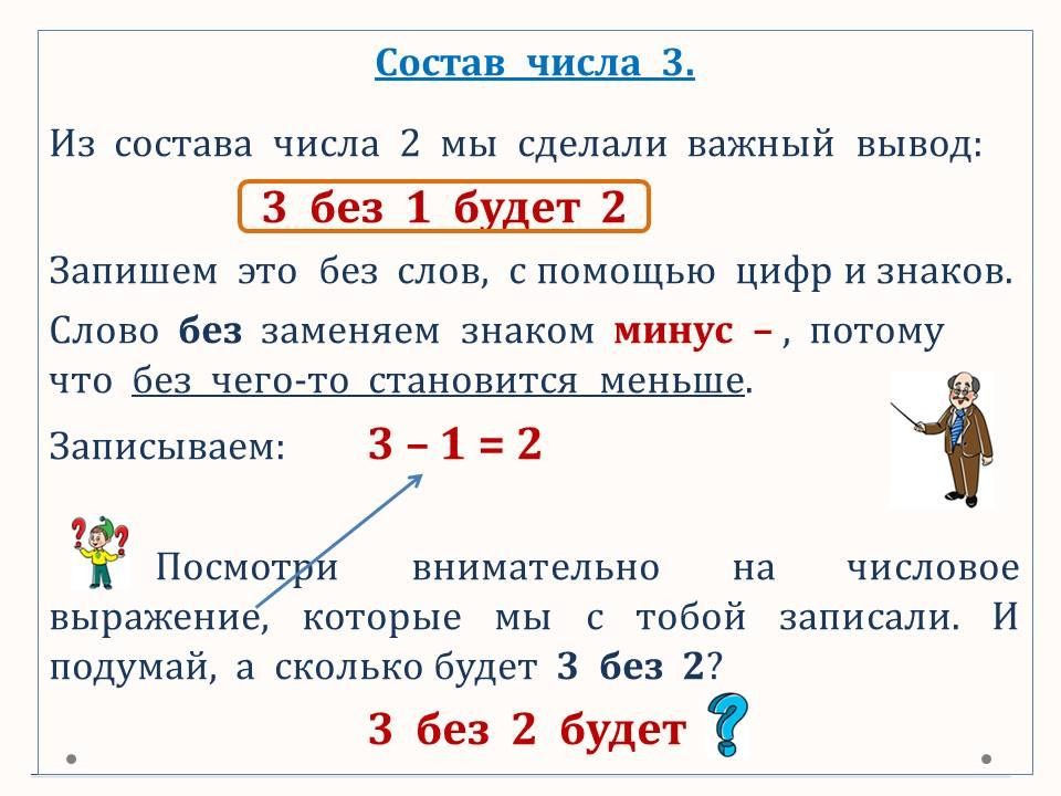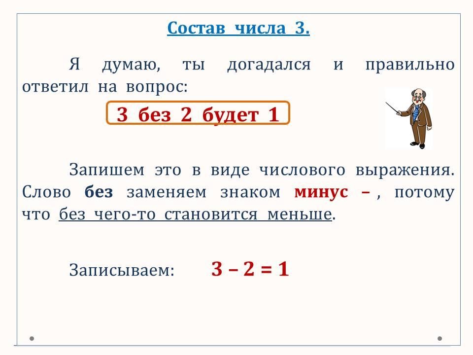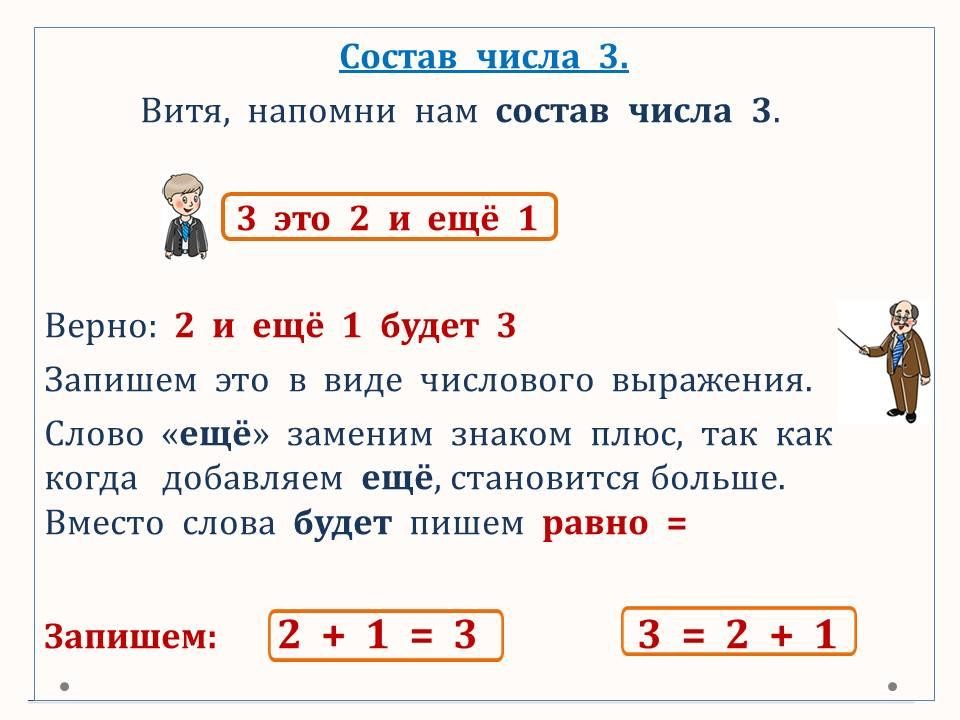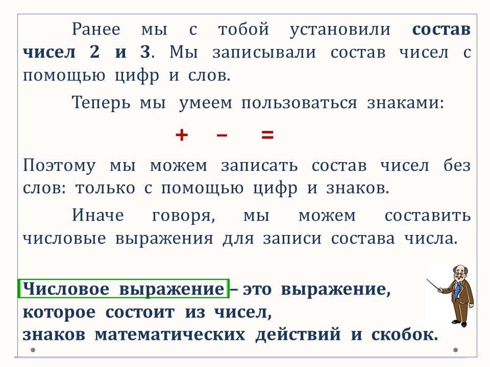 Программа 1 класса ОШ. Определяем и записываем состав чисел 2 и 3 в виде числовых выражений.