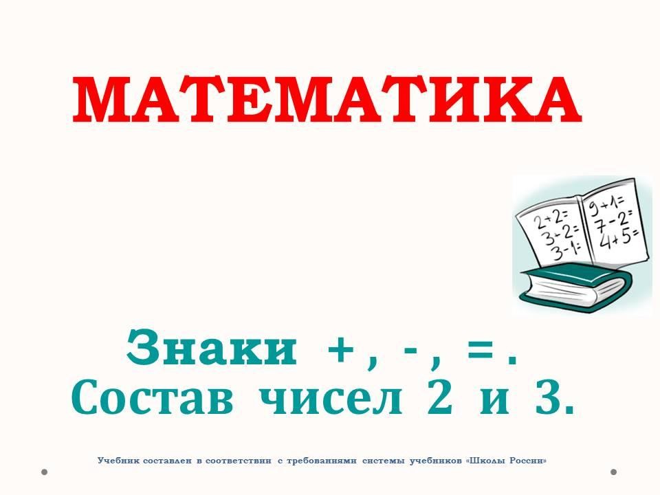 Знаки +, -,=. Состав чисел 2 и 3.