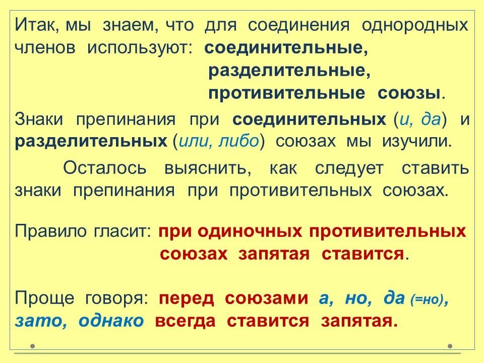 В данном уроке рассмотрим постановку знаков препинания при противительных союзах.