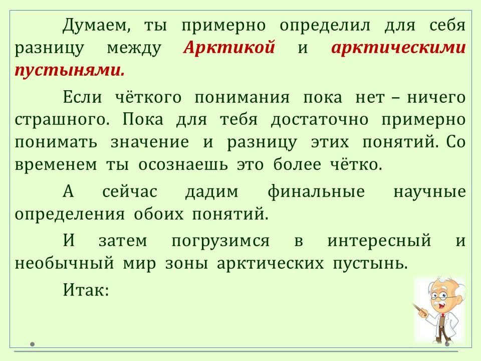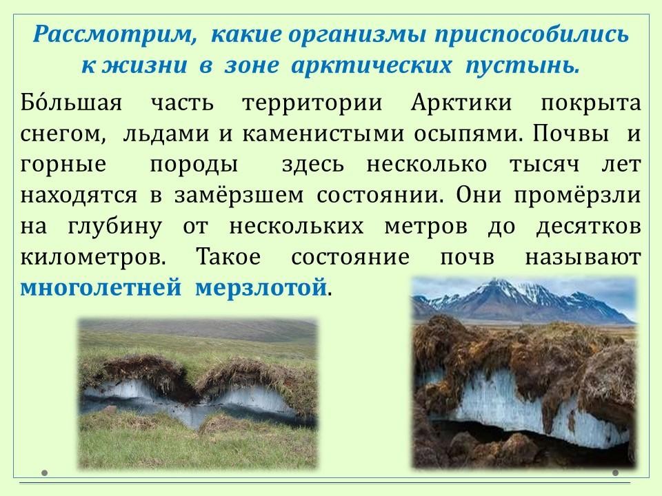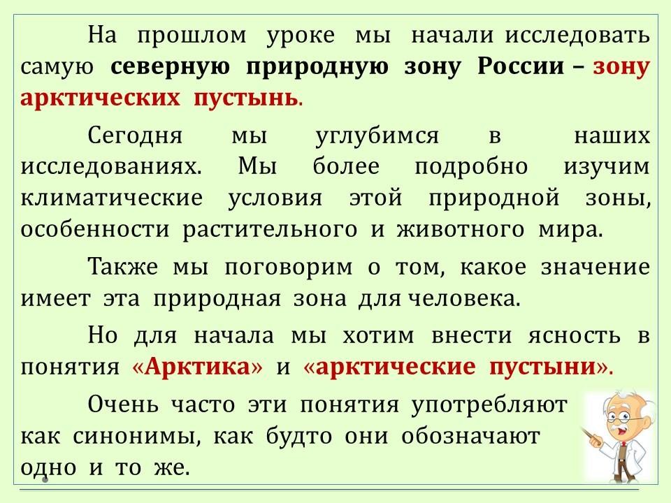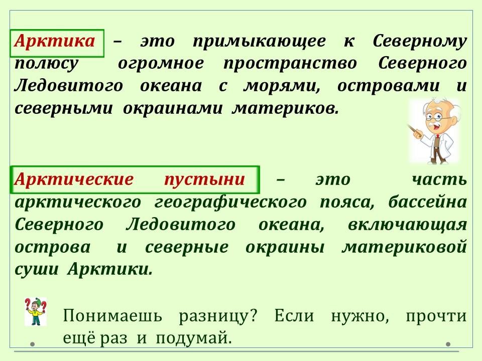 Продолжаем исследовать зону арктических пустынь. А также устанавливаем соотношение понятий "Арктика" и "арктические пустыни".